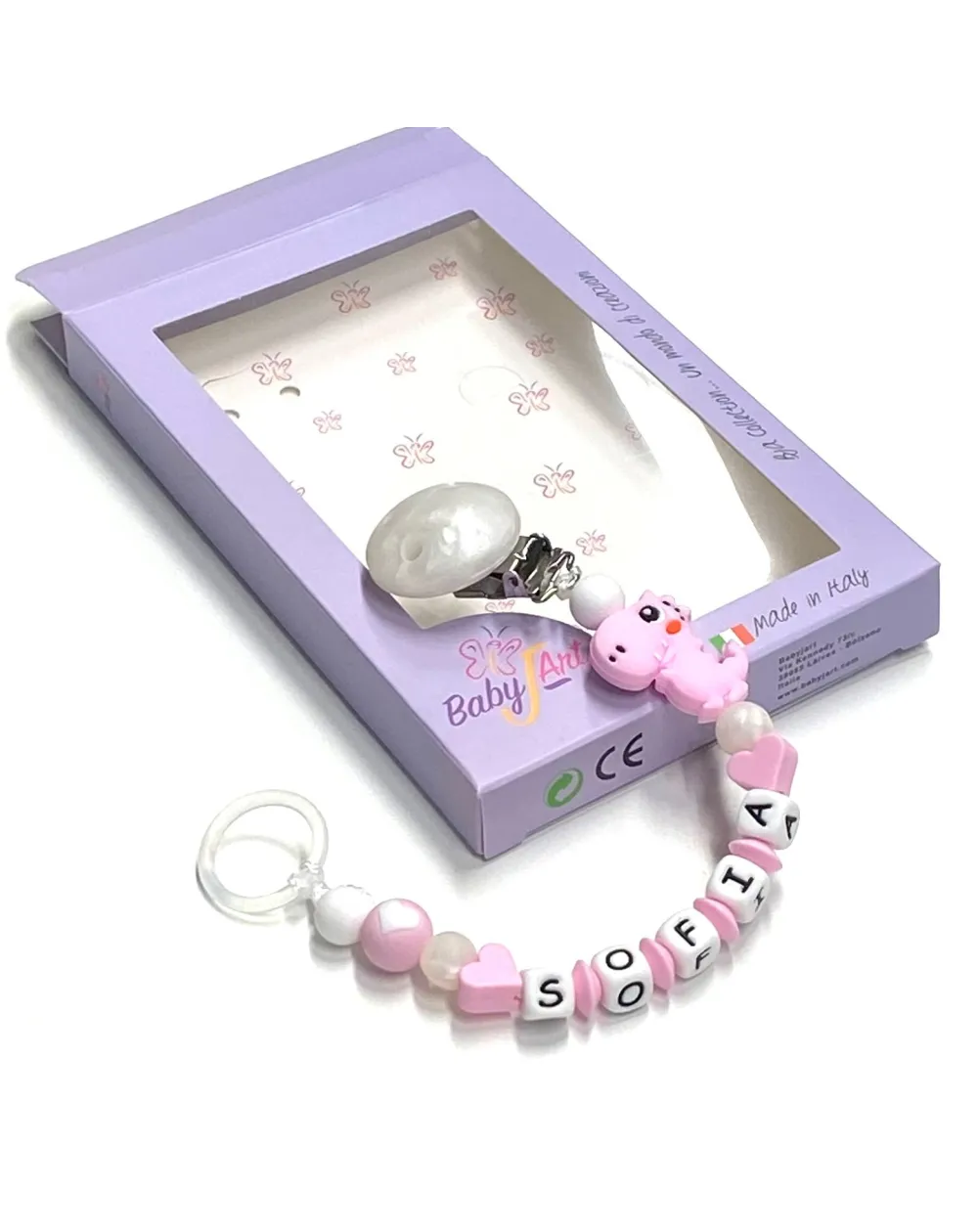 Babyjart Silikonschnullerkette mit Name, Haken / Adapter Schnuller MAM und CHICCO