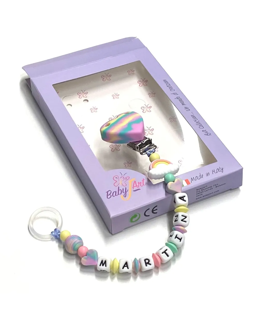 Babyjart Silikonschnullerkette mit Name, Haken / Adapter Schnuller MAM und CHICCO