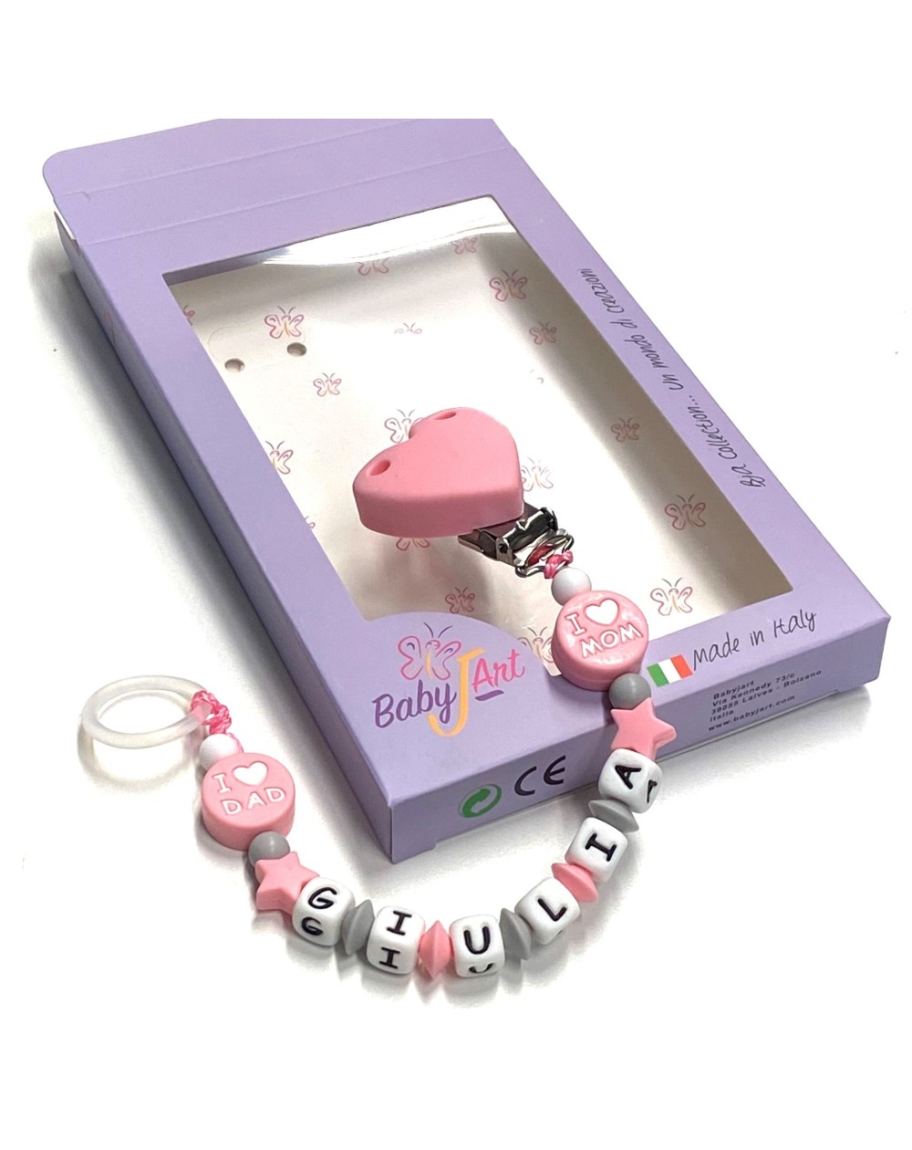Babyjart Silikonschnullerkette mit Name, Haken / Adapter Schnuller MAM und CHICCO