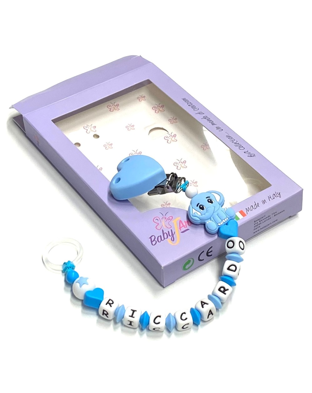 Alle Komponenten werden nach höchsten Sicherheitsstandards und gemäß EN 71-3 hergestellt: - Die verwendete Farbart ist völlig ungiftig, unlösbar, resistent gegen Speichel und Schweiß und frei von BPA - Metallteile sind rostfrei und nickelfrei Aus Sicherheitsgründen erreicht die Kette von einem Knoten und einem Knoten eine Länge zwischen maximal 20/22 cm. Es wird dann an die Länge des Namens angepasst, ohne jedoch Änderungen am Typ vorzunehmen. Die Kette ist daher für jede Art von Schnuller geeignet.