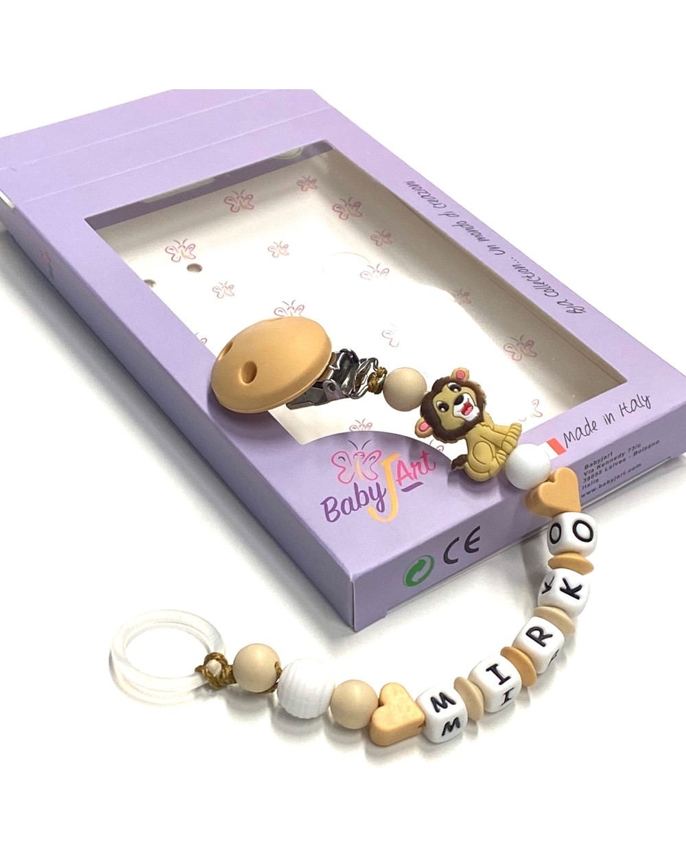 Alle Komponenten werden nach höchsten Sicherheitsstandards und gemäß EN 71-3 hergestellt: - Die verwendete Farbart ist völlig ungiftig, unlösbar, resistent gegen Speichel und Schweiß und frei von BPA - Metallteile sind rostfrei und nickelfrei Aus Sicherheitsgründen erreicht die Kette von einem Knoten und einem Knoten eine Länge zwischen maximal 20/22 cm. Es wird dann an die Länge des Namens angepasst, ohne jedoch Änderungen am Typ vorzunehmen. Die Kette ist daher für jede Art von Schnuller geeignet.