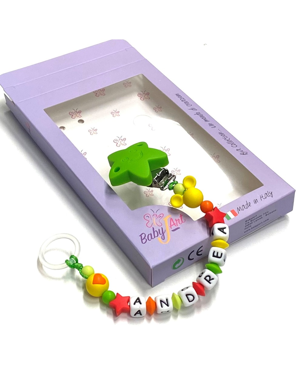 Babyjart Silikonschnullerkette mit Name, Haken / Adapter Schnuller MAM und CHICCO