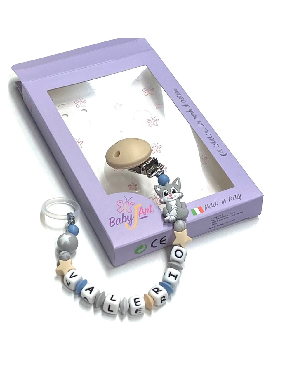 Alle Komponenten werden nach höchsten Sicherheitsstandards und gemäß EN 71-3 hergestellt: - Die verwendete Farbart ist völlig ungiftig, unlösbar, resistent gegen Speichel und Schweiß und frei von BPA - Metallteile sind rostfrei und nickelfrei Aus Sicherheitsgründen erreicht die Kette von einem Knoten und einem Knoten eine Länge zwischen maximal 20/22 cm. Es wird dann an die Länge des Namens angepasst, ohne jedoch Änderungen am Typ vorzunehmen. Die Kette ist daher für jede Art von Schnuller geeignet.