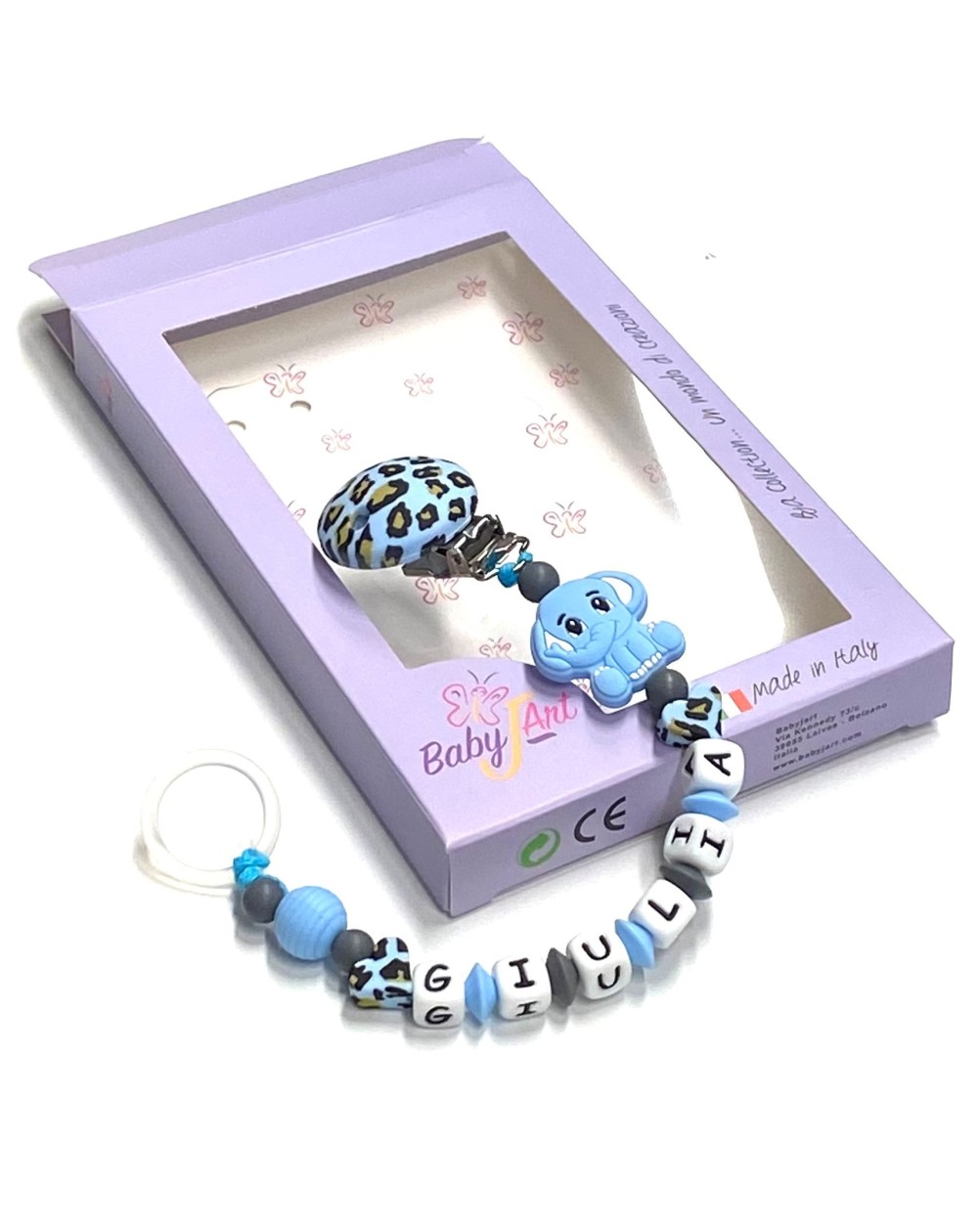 Alle Komponenten werden nach höchsten Sicherheitsstandards und gemäß EN 71-3 hergestellt: - Die verwendete Farbart ist völlig ungiftig, unlösbar, resistent gegen Speichel und Schweiß und frei von BPA - Metallteile sind rostfrei und nickelfrei Aus Sicherheitsgründen erreicht die Kette von einem Knoten und einem Knoten eine Länge zwischen maximal 20/22 cm. Es wird dann an die Länge des Namens angepasst, ohne jedoch Änderungen am Typ vorzunehmen. Die Kette ist daher für jede Art von Schnuller geeignet.
