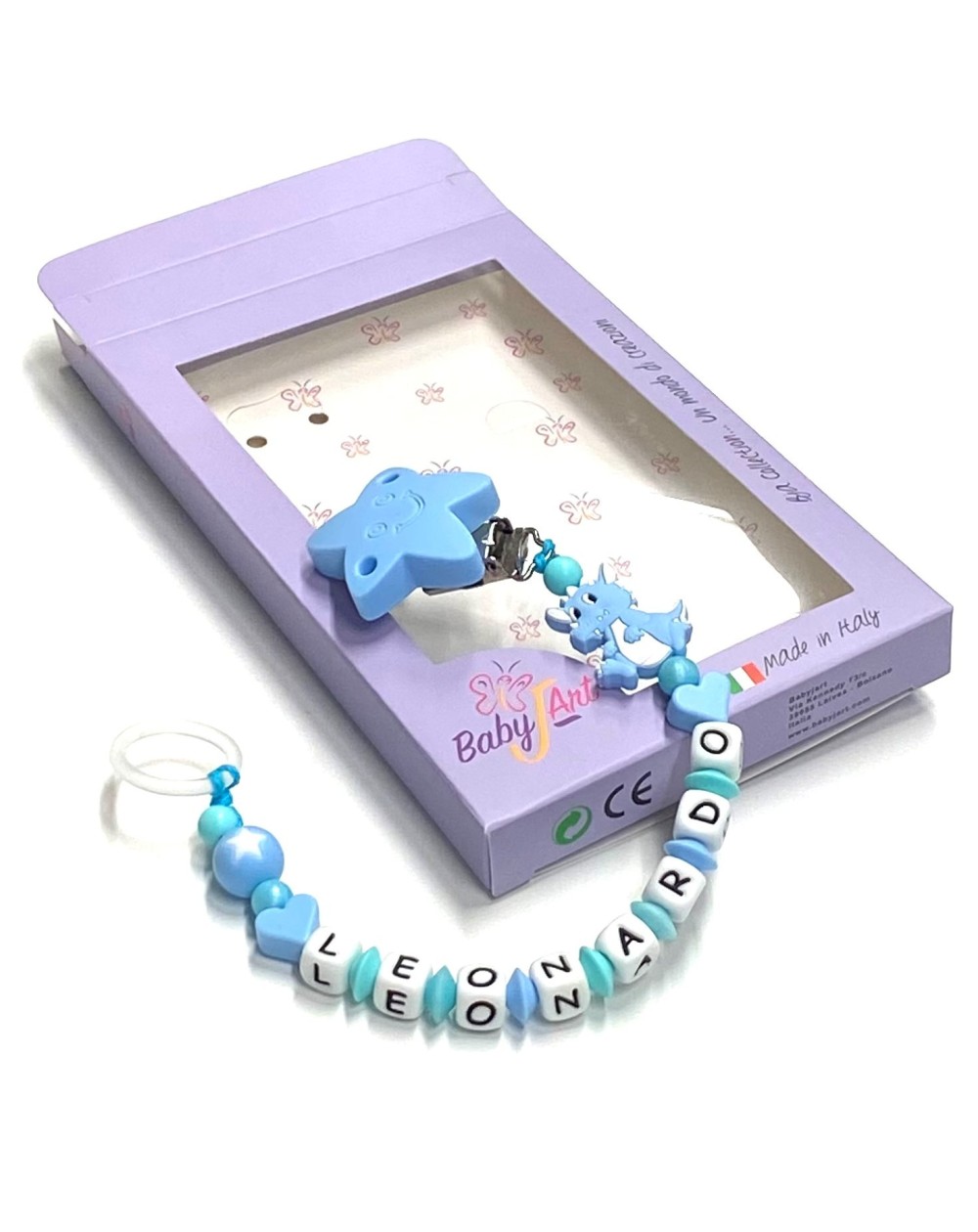 Alle Komponenten werden nach höchsten Sicherheitsstandards und gemäß EN 71-3 hergestellt: - Die verwendete Farbart ist völlig ungiftig, unlösbar, resistent gegen Speichel und Schweiß und frei von BPA - Metallteile sind rostfrei und nickelfrei Aus Sicherheitsgründen erreicht die Kette von einem Knoten und einem Knoten eine Länge zwischen maximal 20/22 cm. Es wird dann an die Länge des Namens angepasst, ohne jedoch Änderungen am Typ vorzunehmen. Die Kette ist daher für jede Art von Schnuller geeignet.