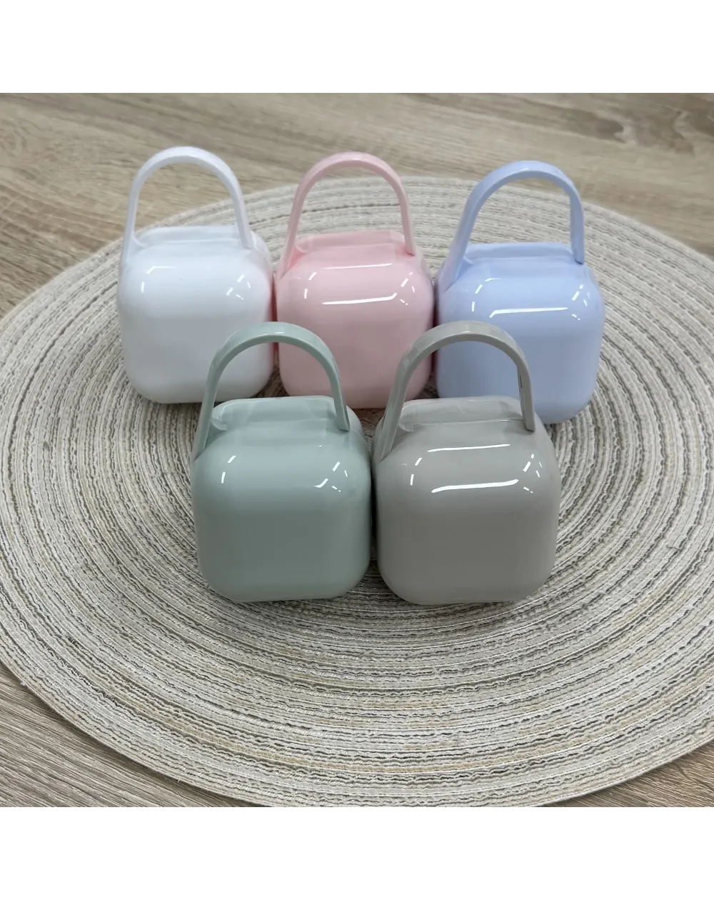 Der personalisierbare Schnullerhalter aus Kunststoff ist die ideale Lösung, um den Schnuller sauber und geschützt aufzubewahren. Aus hartem, widerstandsfähigem und sicherem Kunststoff gefertigt, schützt er den Schnuller vor Staub, Schmutz und Stürzen.