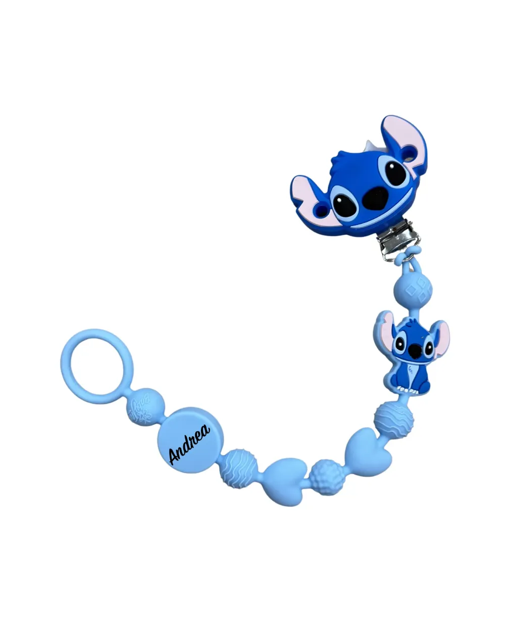 Die maximale Länge beträgt 22 cm, gemessen vom Schnulleradapter bis zum Ende des dekorativen Elements oder Charms, Clip ausgeschlossen, gemäß den geltenden Sicherheitsvorgaben.