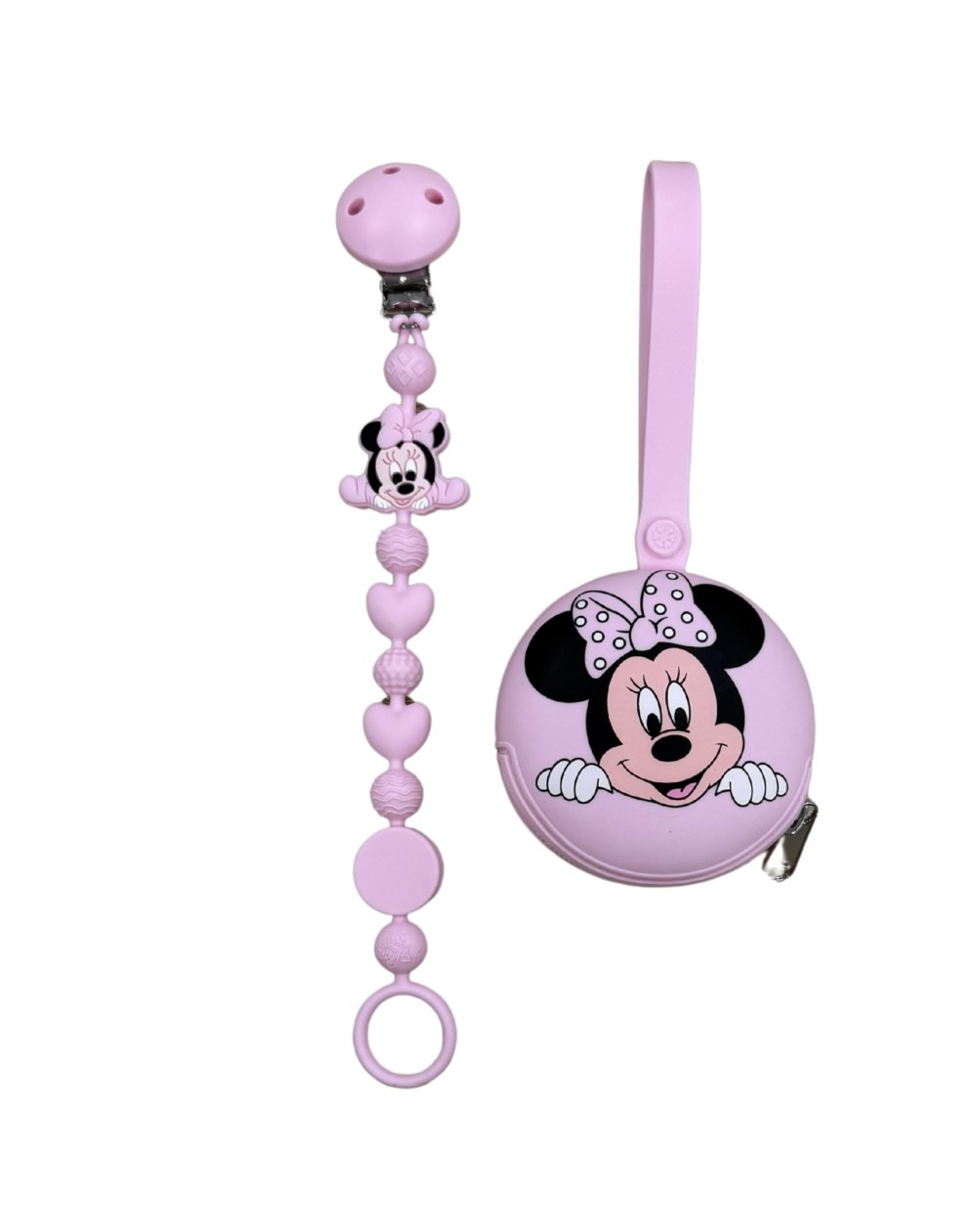 Silikonschnullerkette BUBBLE CHARM MINNIE HELLROSA mit Name