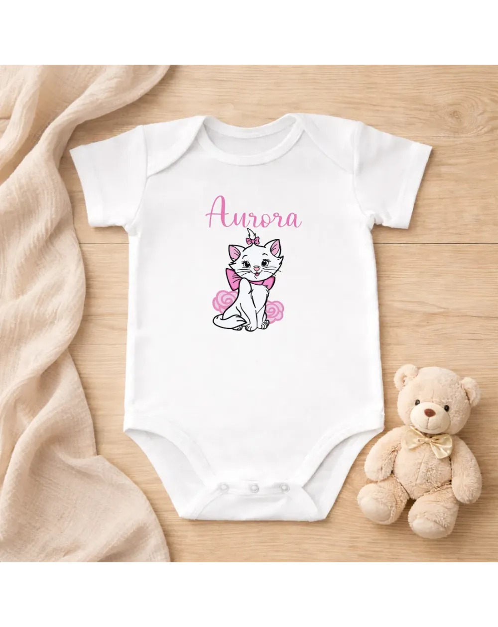 Thanks to the personalization with name and image, every bodysuit becomes unique. You can create a special garment with your baby’s name, a small illustration or a sweet symbol, making it perfect also as an original gift for birth, baptism or baby shower.