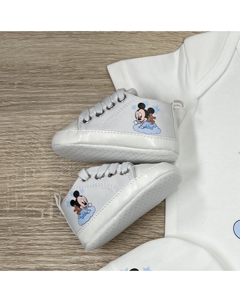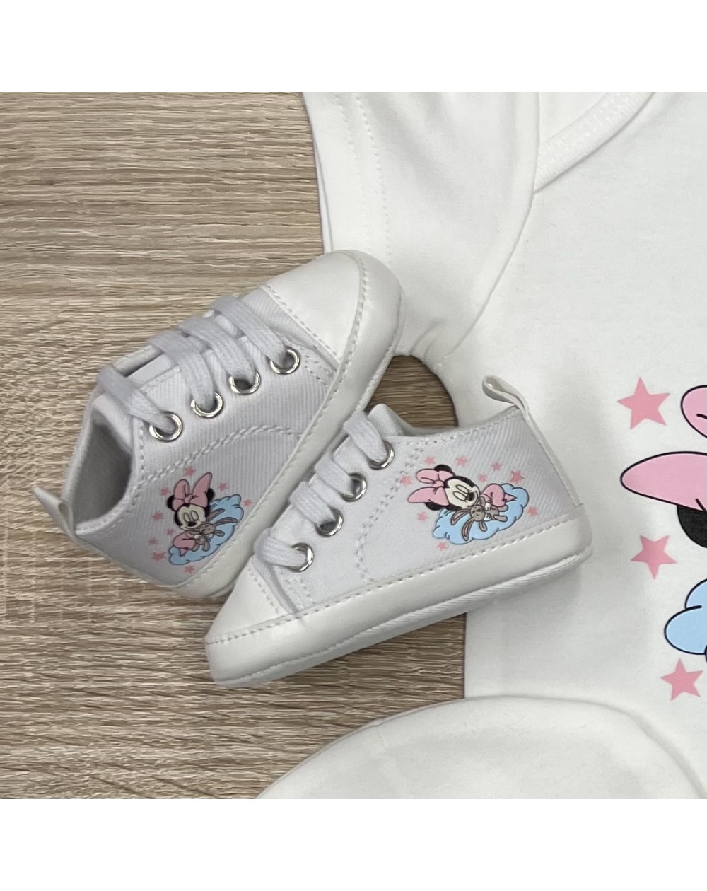 The first beautiful sneakers for newborns are made of canvas, with laces, eco-leather toe and fabric sole.