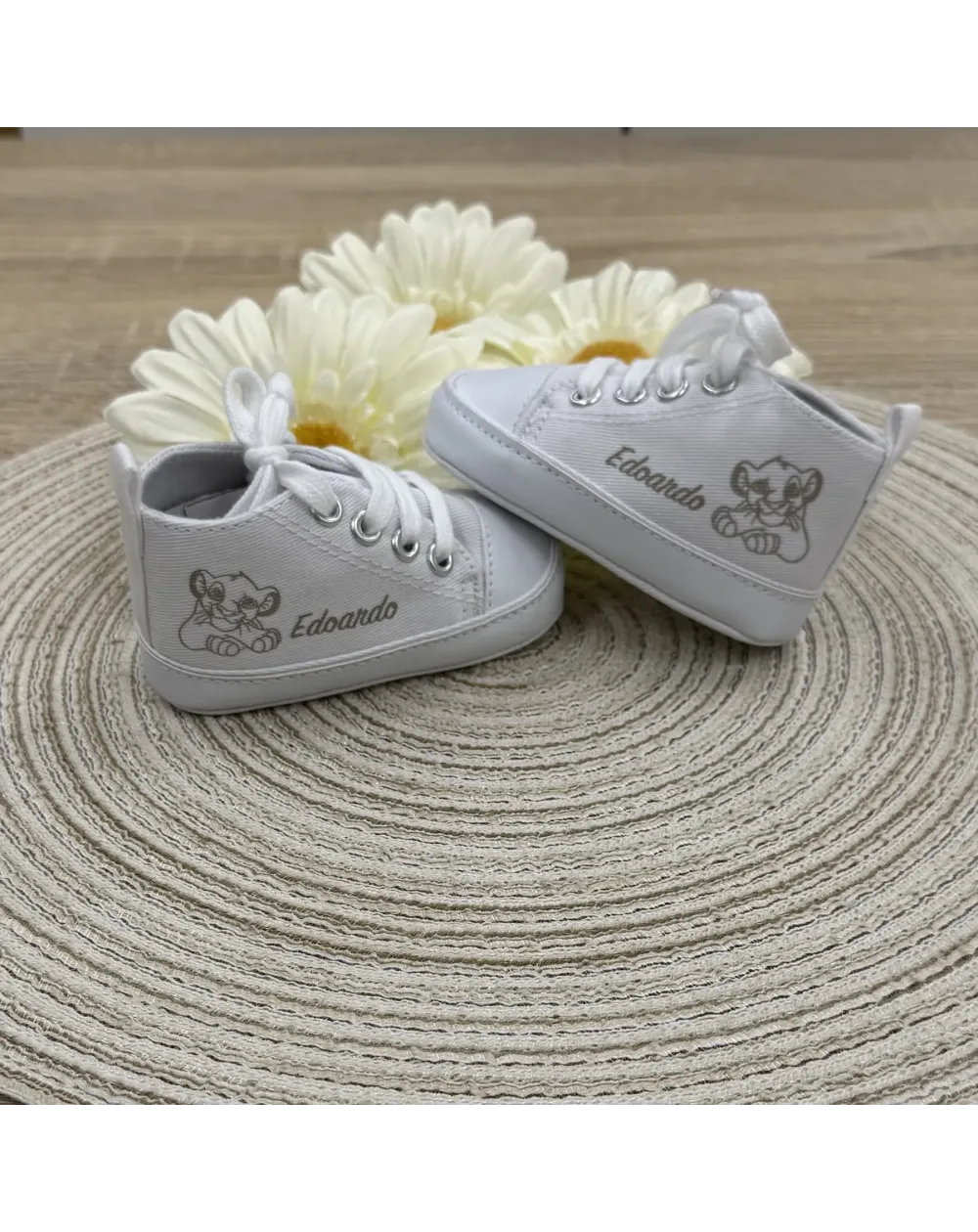 The personalization is created using laser engraving, a precise and durable technique that allows the name and image to be engraved with great definition. This type of customization creates an elegant and long-lasting result, turning the booties into a meaningful keepsake.