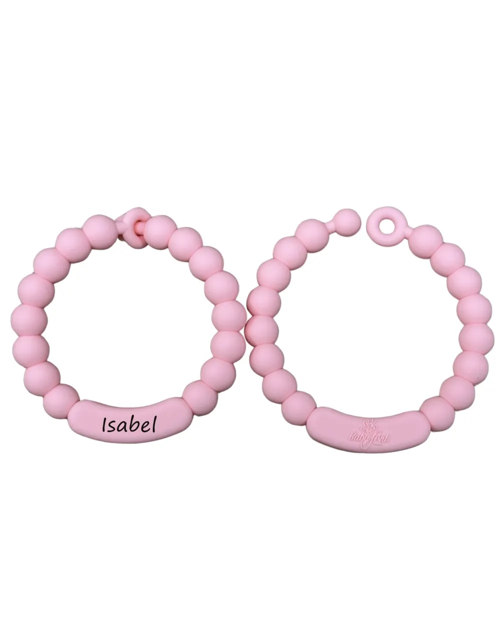 Personalized Silicone Teething Ring with Baby Name – Pastel Pink