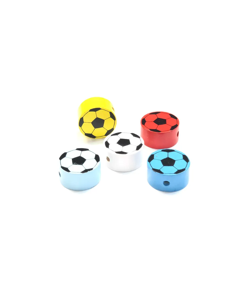 Football in WOOD. Dimensions approx. 20mm x 10mm. Hole approx. 3mm