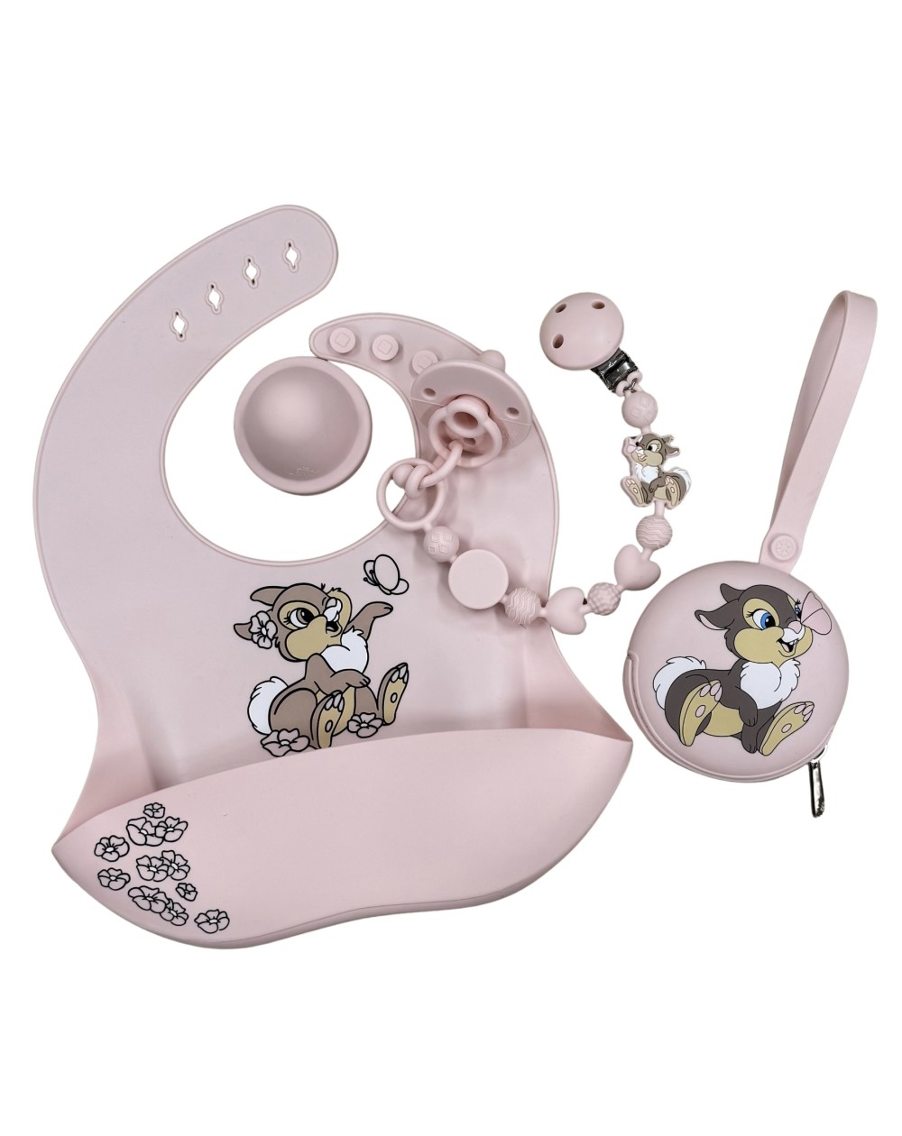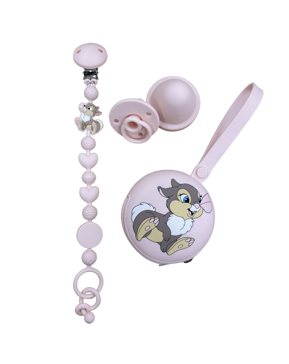 Pacifier chain in silicone BUBBLE CHARM MISS TAMBURINA TALCUM POWDER LIGHT PINK with name