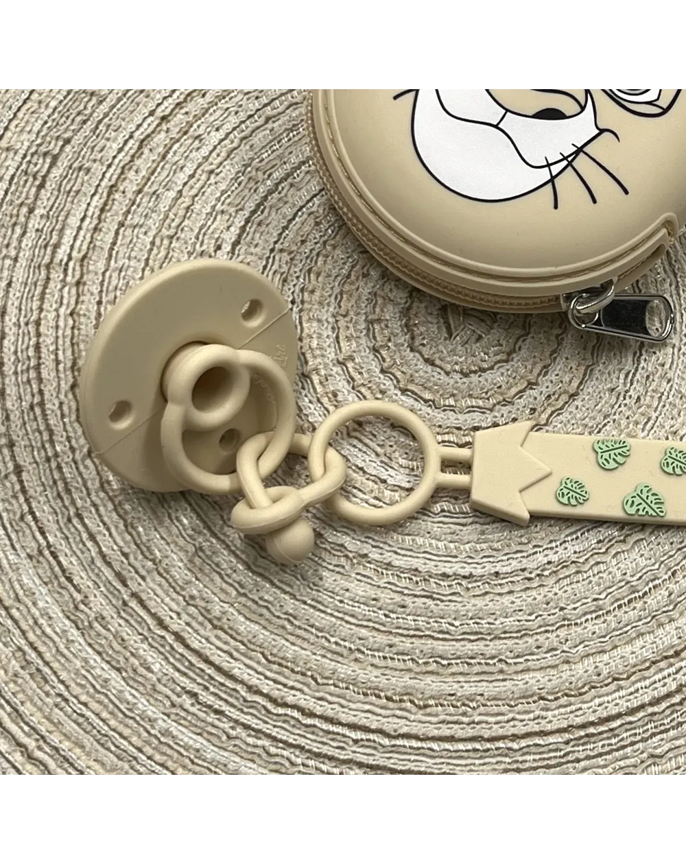 The pacifier chain is supplied with a round clip included. It is possible to add extra interchangeable clips to match different outfits or preferences. Additional clips are not included in the price and can be purchased separately.