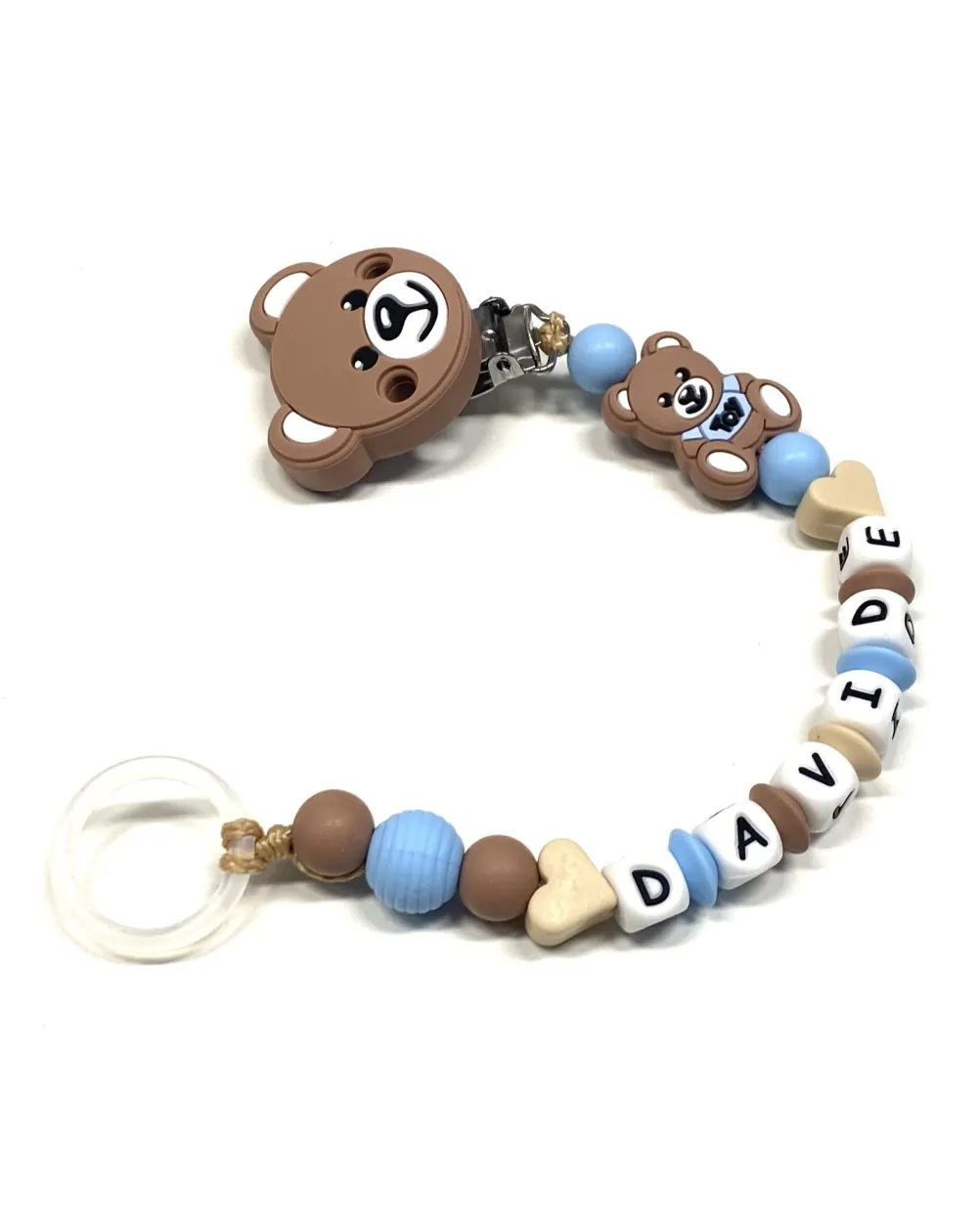Silicone chain holder, made strictly by hand in compliance with EN 71-3. Customizable with name. Name max 10 letters; Double name max 9 letters.