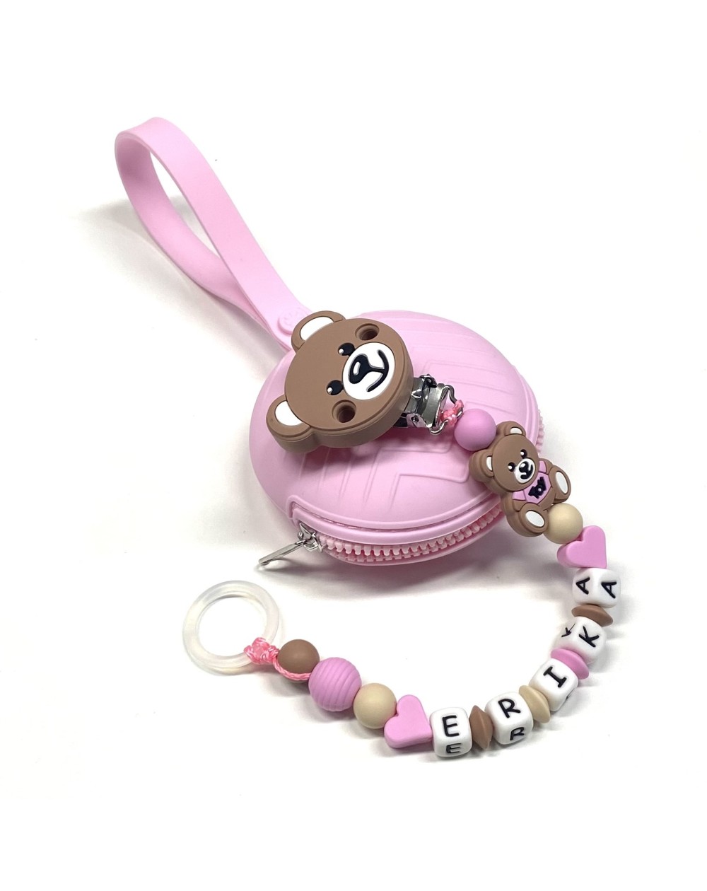 Silicone chain holder, made strictly by hand in compliance with EN 71-3. Customizable with name. Name max 10 letters; Double name max 9 letters.
