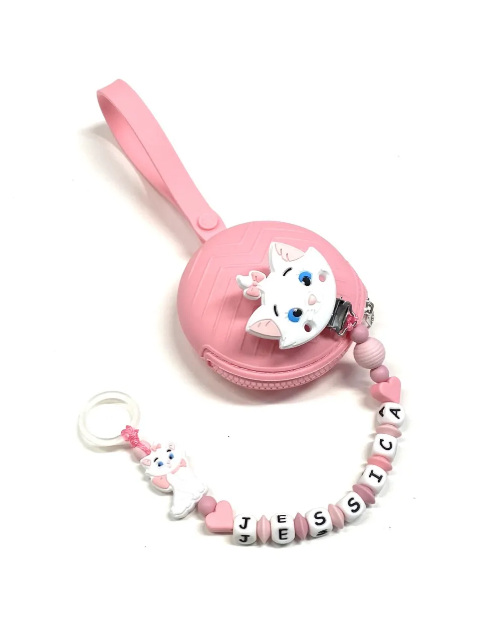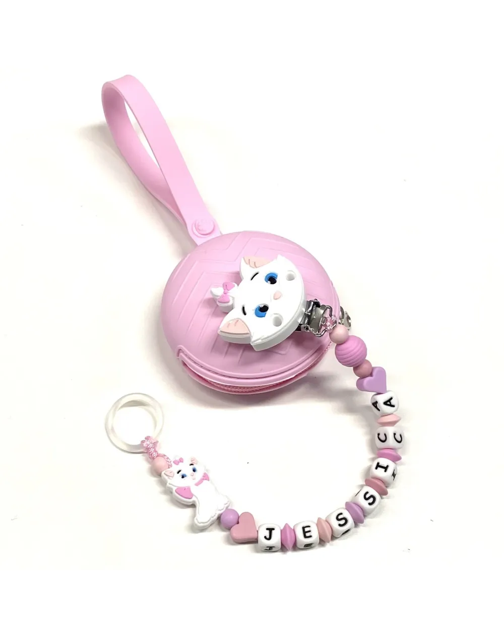 Silicone chain holder, made strictly by hand in compliance with EN 71-3. Customizable with name. Name max 10 letters; Double name max 9 letters.