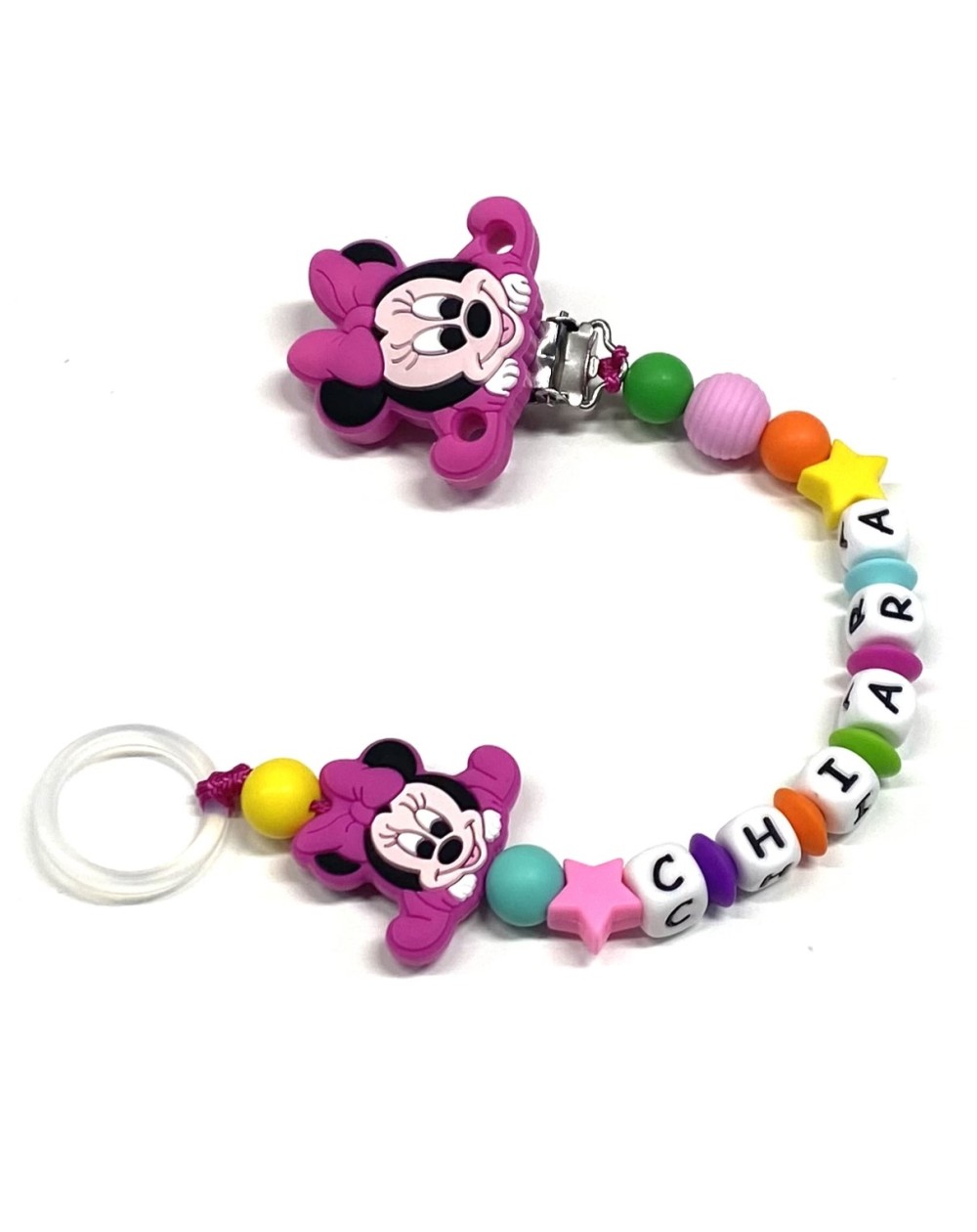Babyjart silicone dummy chain PRESTIGE MINNIE with name, hook / adapter pacifier MAM and CHICCO
