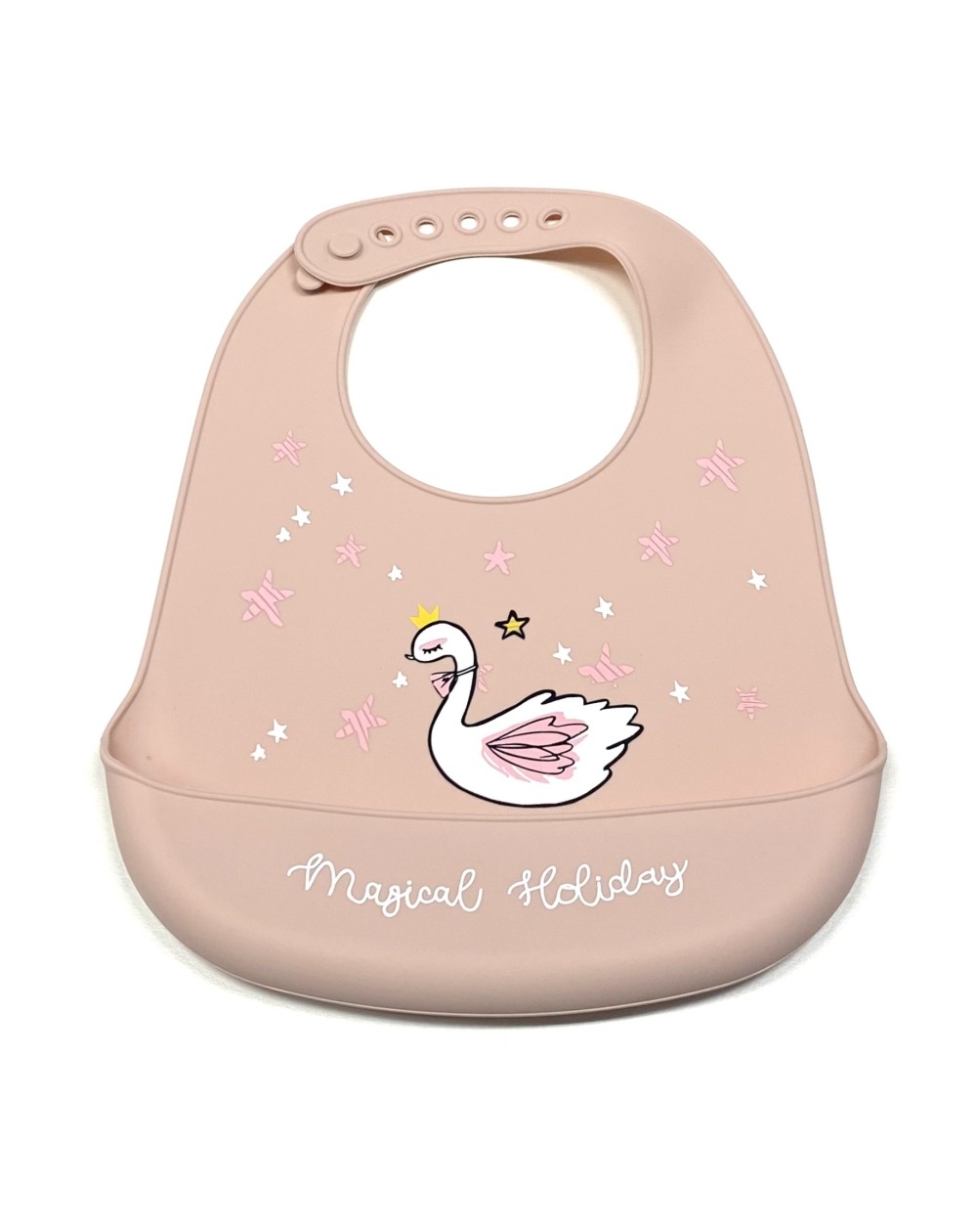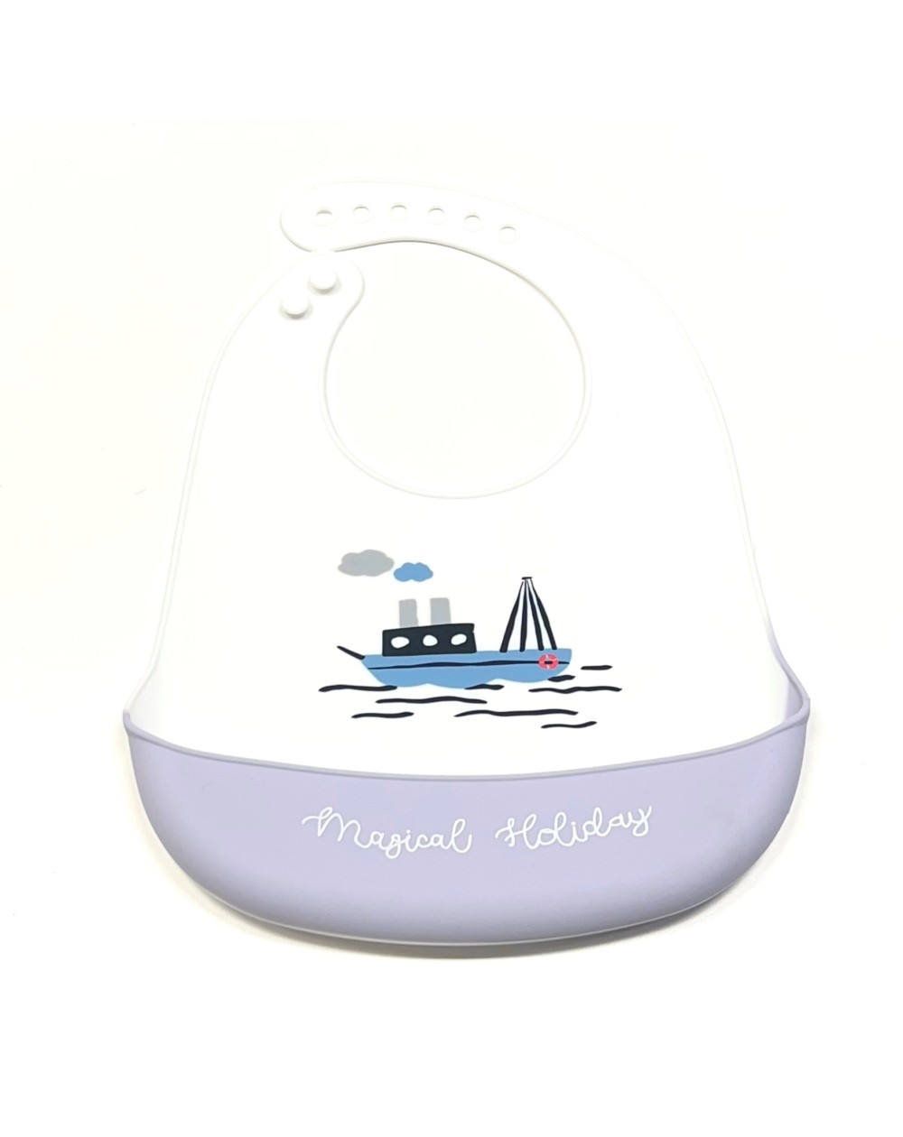 Extremely soft and foldable bib, packaged in its convenient pouch with open-close zip.
