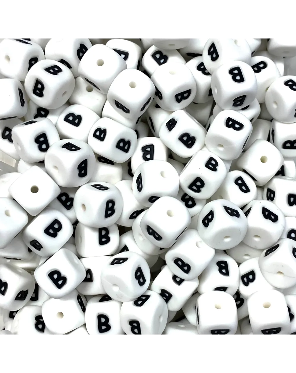 KIT 20 pcs letters in silicone. Size 12mm. Hole approx. 3mm horizontal (from right to left)