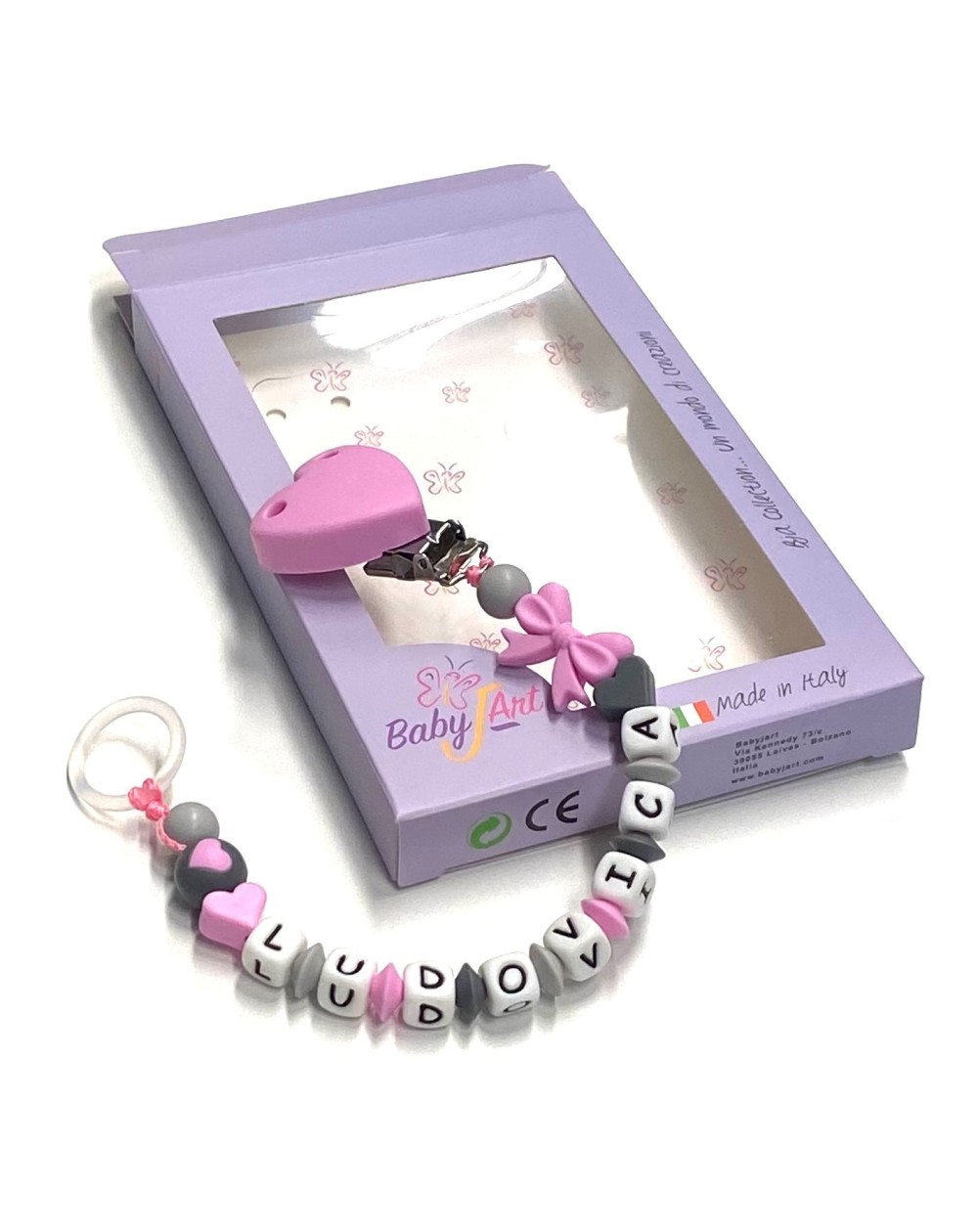 Babyjart silicone dummy chain with name, hook / adapter pacifier MAM and CHICCO