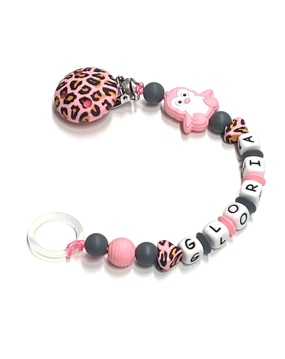 Silicone chain holder, made strictly by hand in compliance with EN 71-3. Customizable with name. Name max 10 letters; Double name max 9 letters. Choice of the CLIP and FIGURE variants