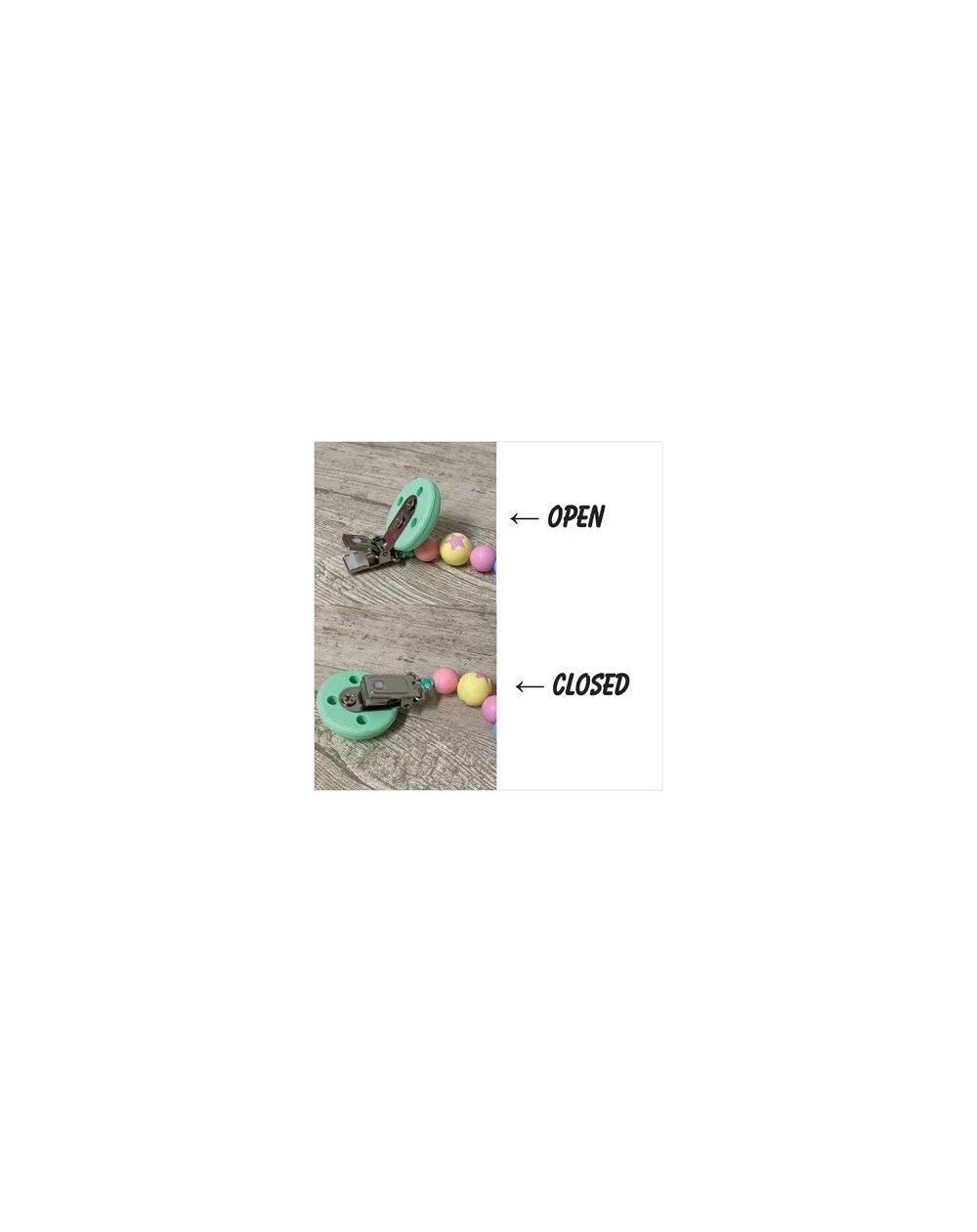 Silicone chain holder, made strictly by hand in compliance with EN 71-3. Customizable with name. Name max 10 letters; Double name max 9 letters. Choice of the CLIP and FIGURE variants