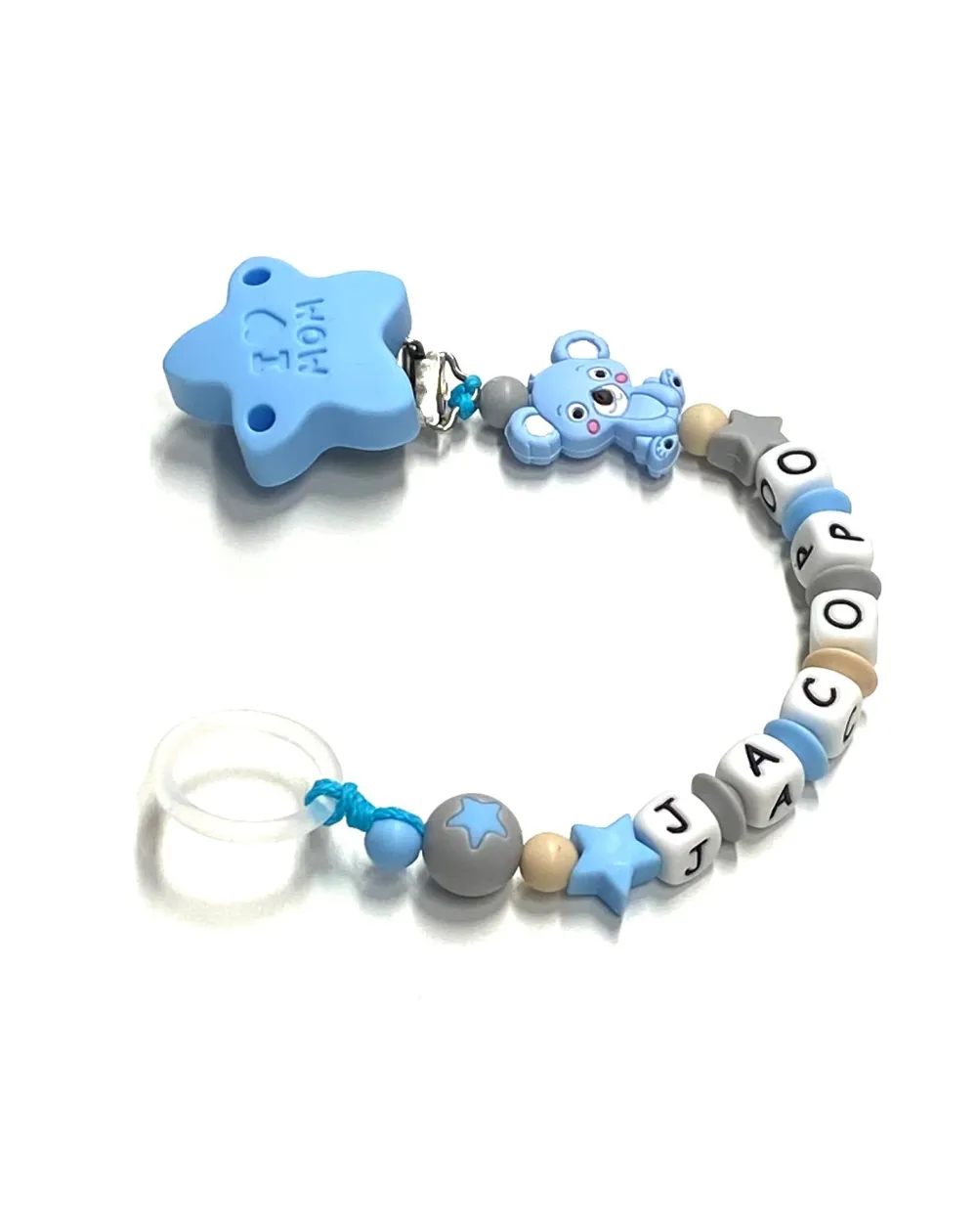 Silicone chain holder, made strictly by hand in compliance with EN 71-3. Customizable with name. Name max 10 letters; Double name max 9 letters. Choice of the CLIP and FIGURE variants
