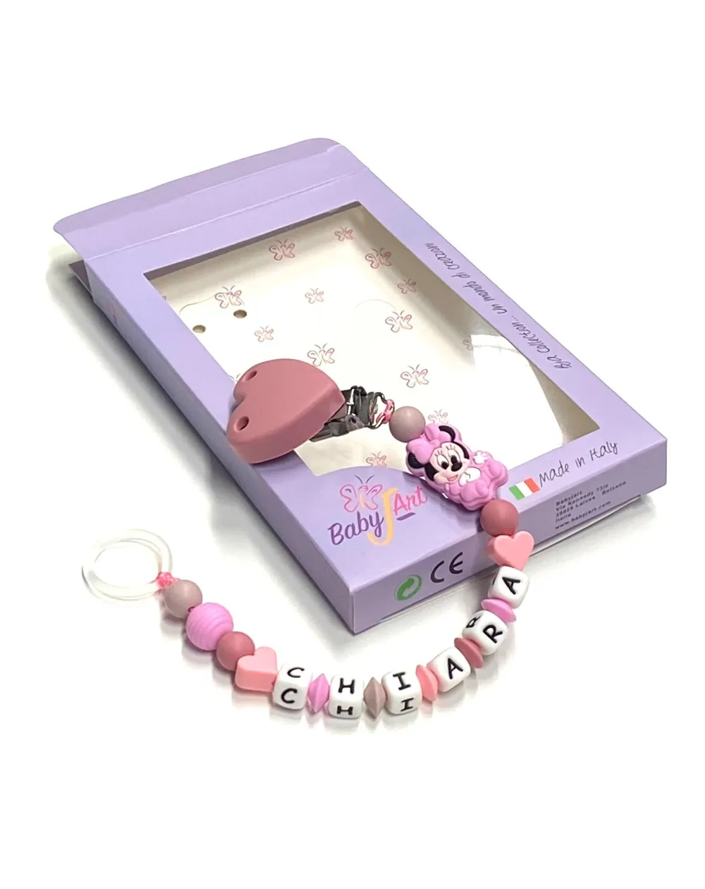 Silicone chain holder, made strictly by hand in compliance with EN 71-3. Customizable with name. Name max 10 letters; Double name max 9 letters. Choice of the CLIP and FIGURE variants