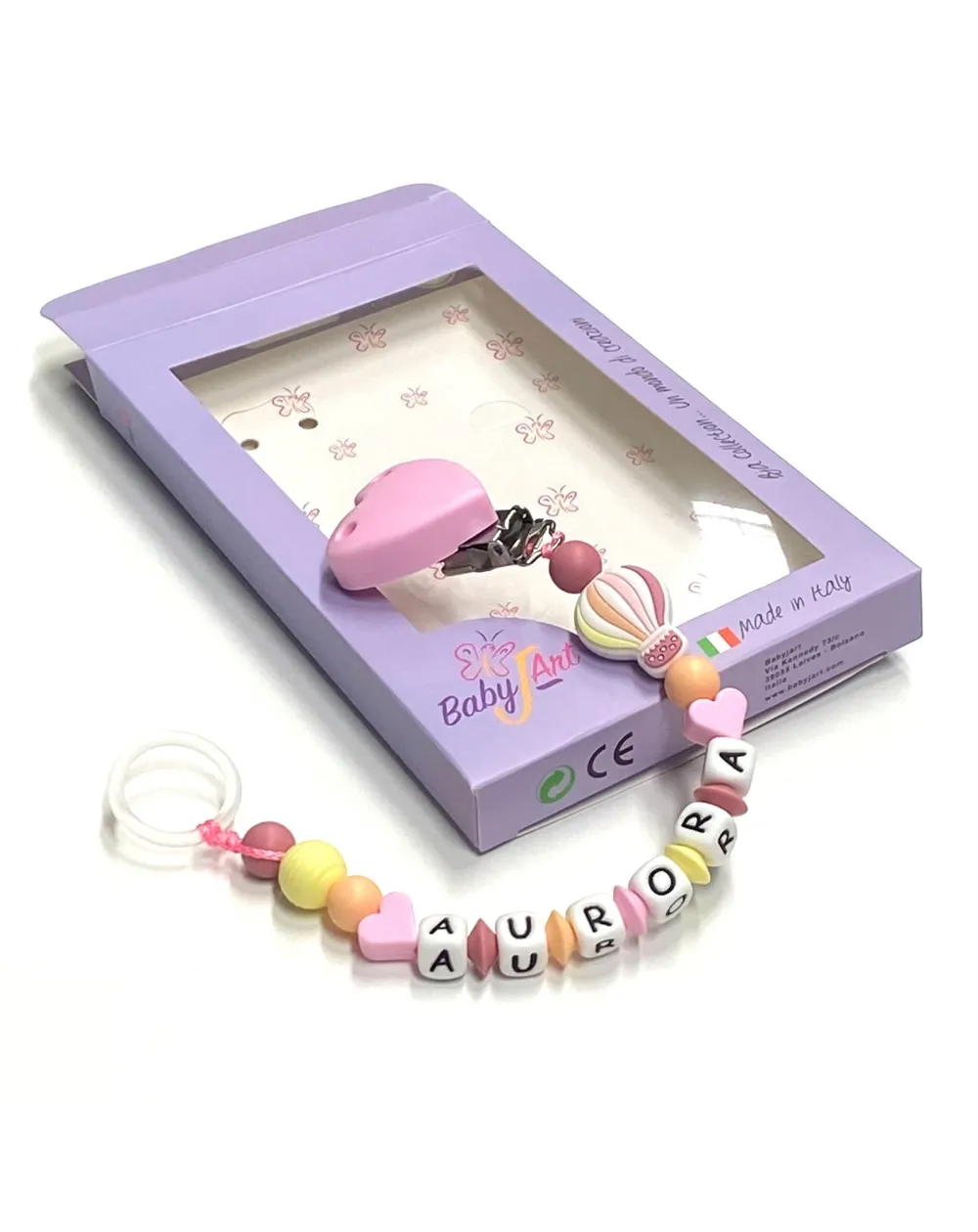 Babyjart silicone dummy chain with name, hook / adapter pacifier MAM and CHICCO