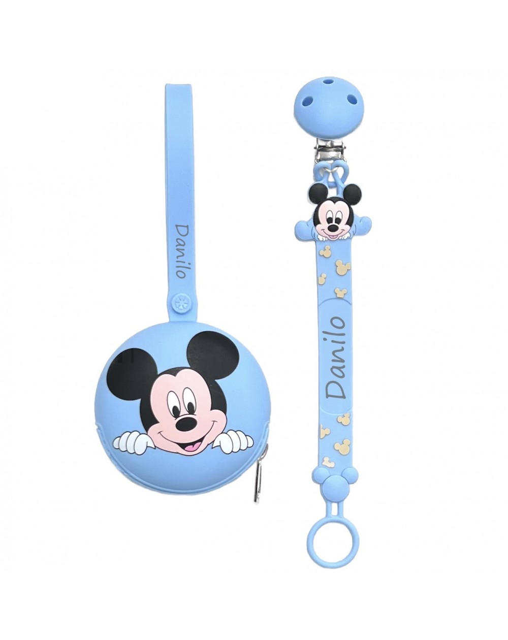 Cadena de chupete FLAT MICKEY MOUSE de silicona para chupete con nombre, gancho / adaptador para chupete mam y modelo de chicco