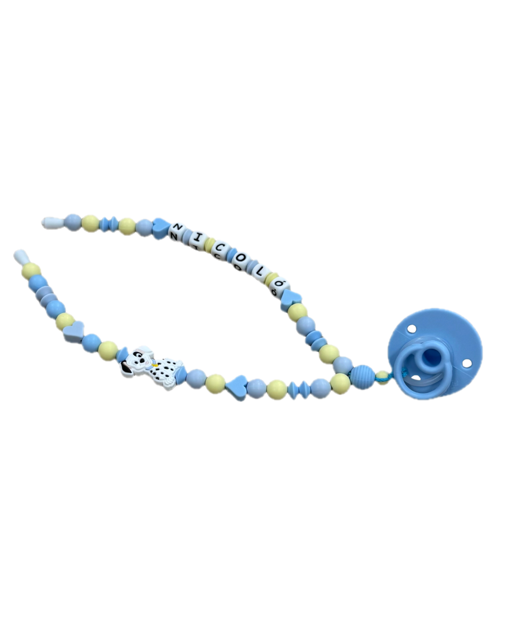 Perfecto y UNIVERSAL para todo tipo de chupete. El collar se suministra con un práctico adaptador doble.