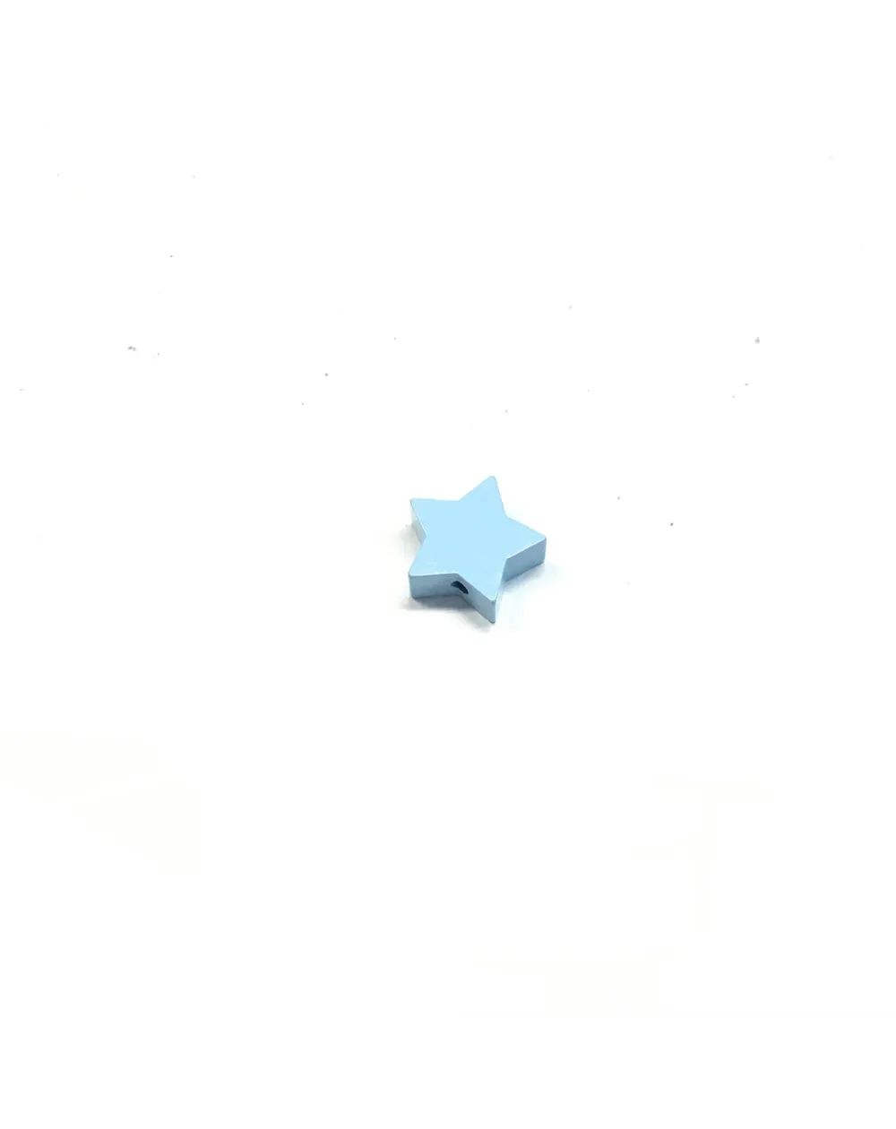 Estrella en MADERA. Dimensiones aprox. 20 mm x 20 mm x 10 mm. Agujero aprox. 3 mm verticales (de arriba a abajo)