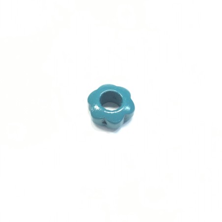 Flor con Agujero en MADERA. Dimensiones aprox. 20x15x10mm. Agujero aprox. 3 mm verticales (de arriba a abajo)