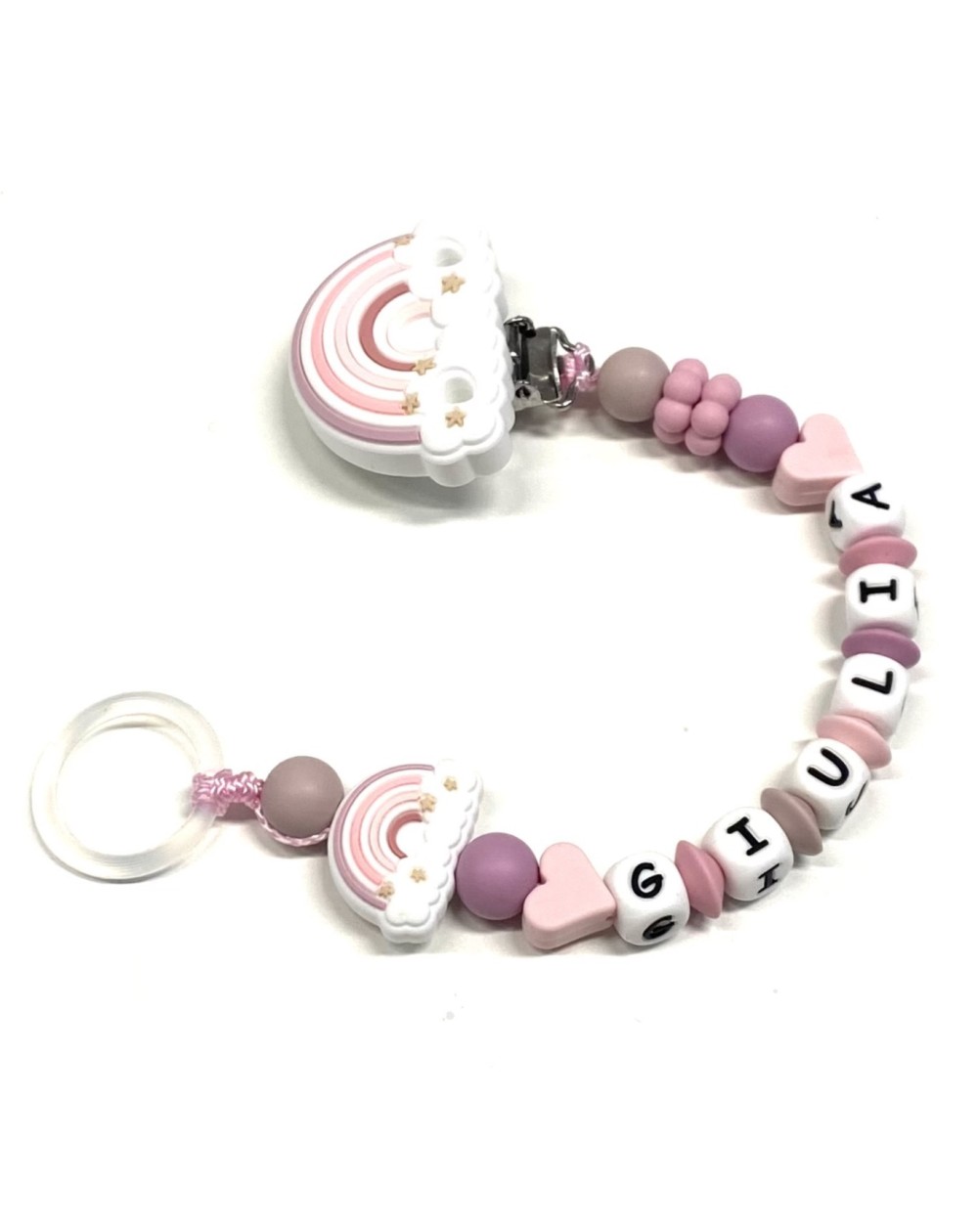 Cadena Chupete Personalizada, ARCOÍRIS, Chupete con Nombre, Cadena de Silicona, Portachupete Personalizado