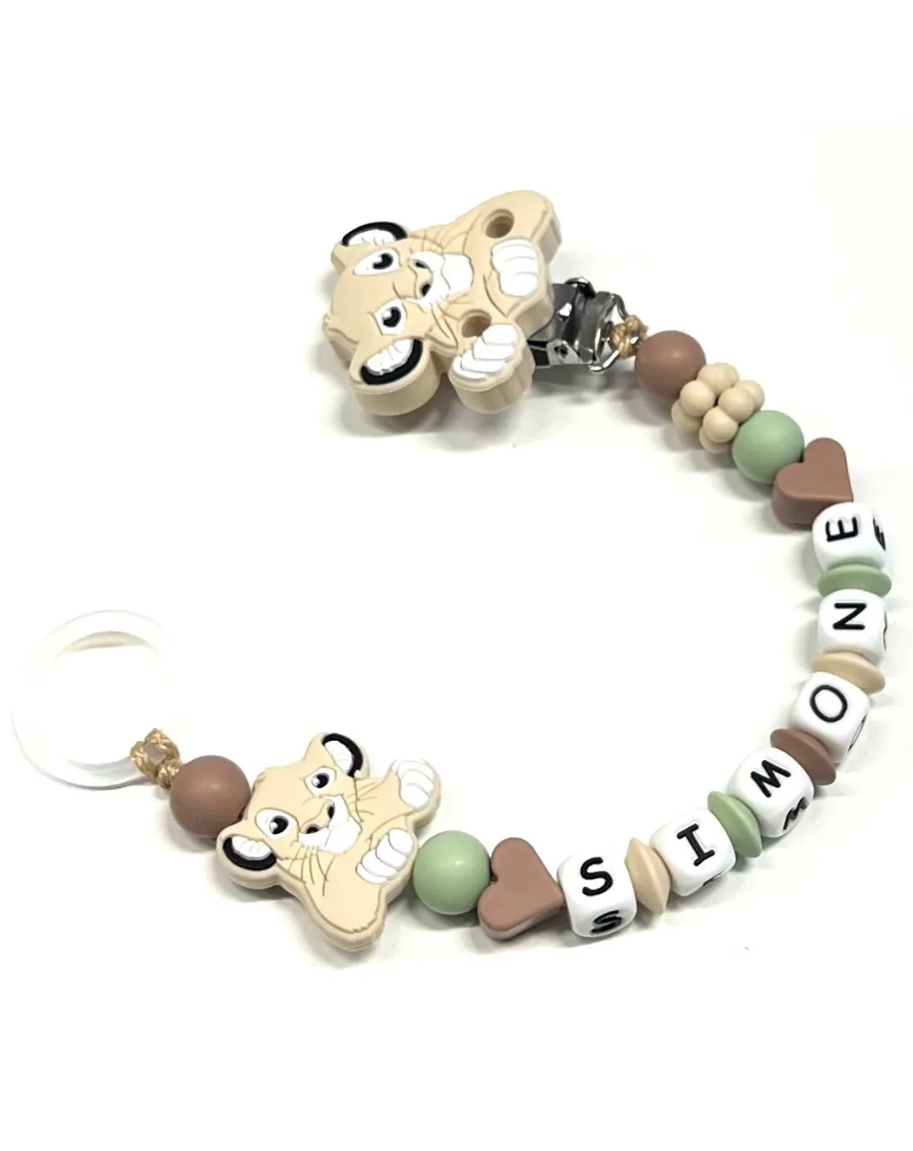 Cadena Chupete Personalizada, LEÓN, Chupete con Nombre, Cadena de Silicona, Portachupete Personalizado