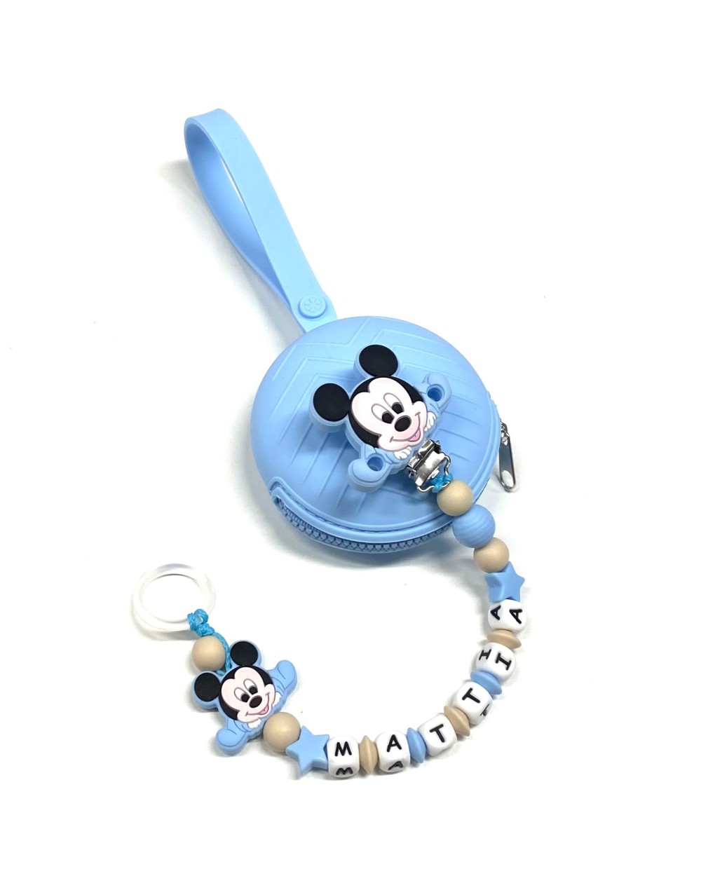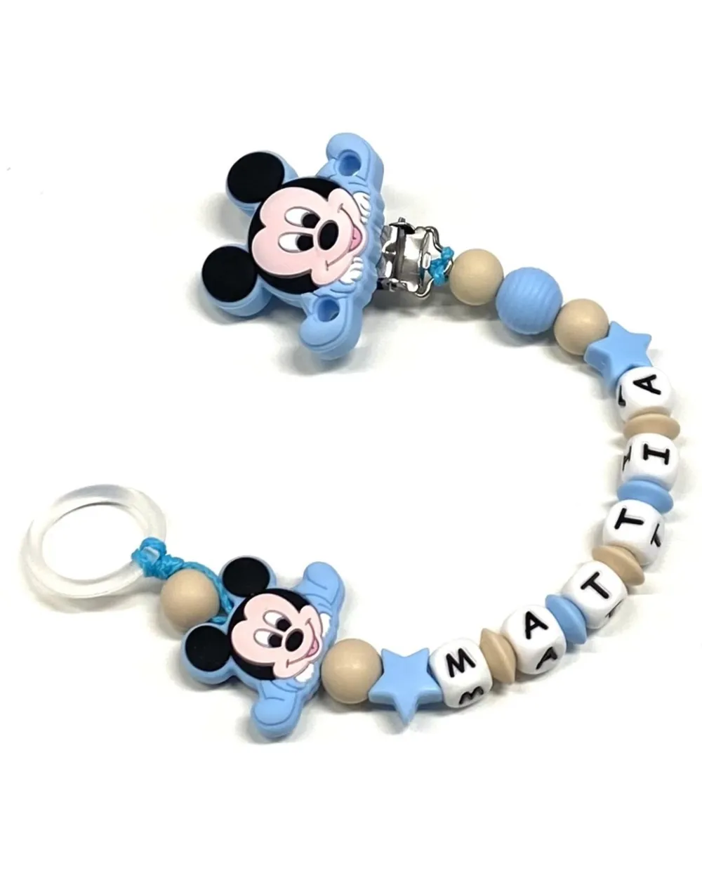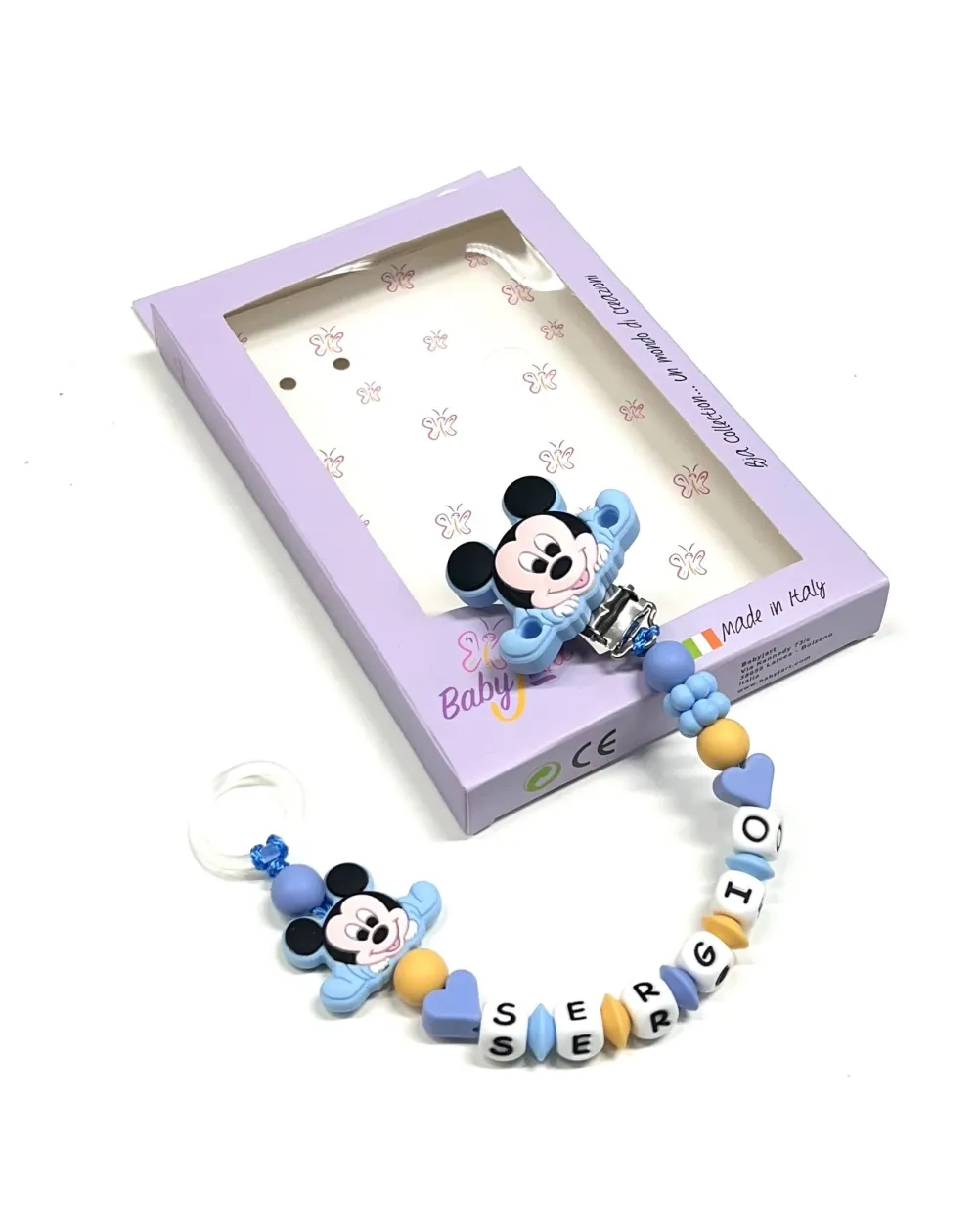 Cadena Chupete Personalizada, MICKEY MOUSE, Chupete con Nombre, Cadena de Silicona, Portachupete Personalizado