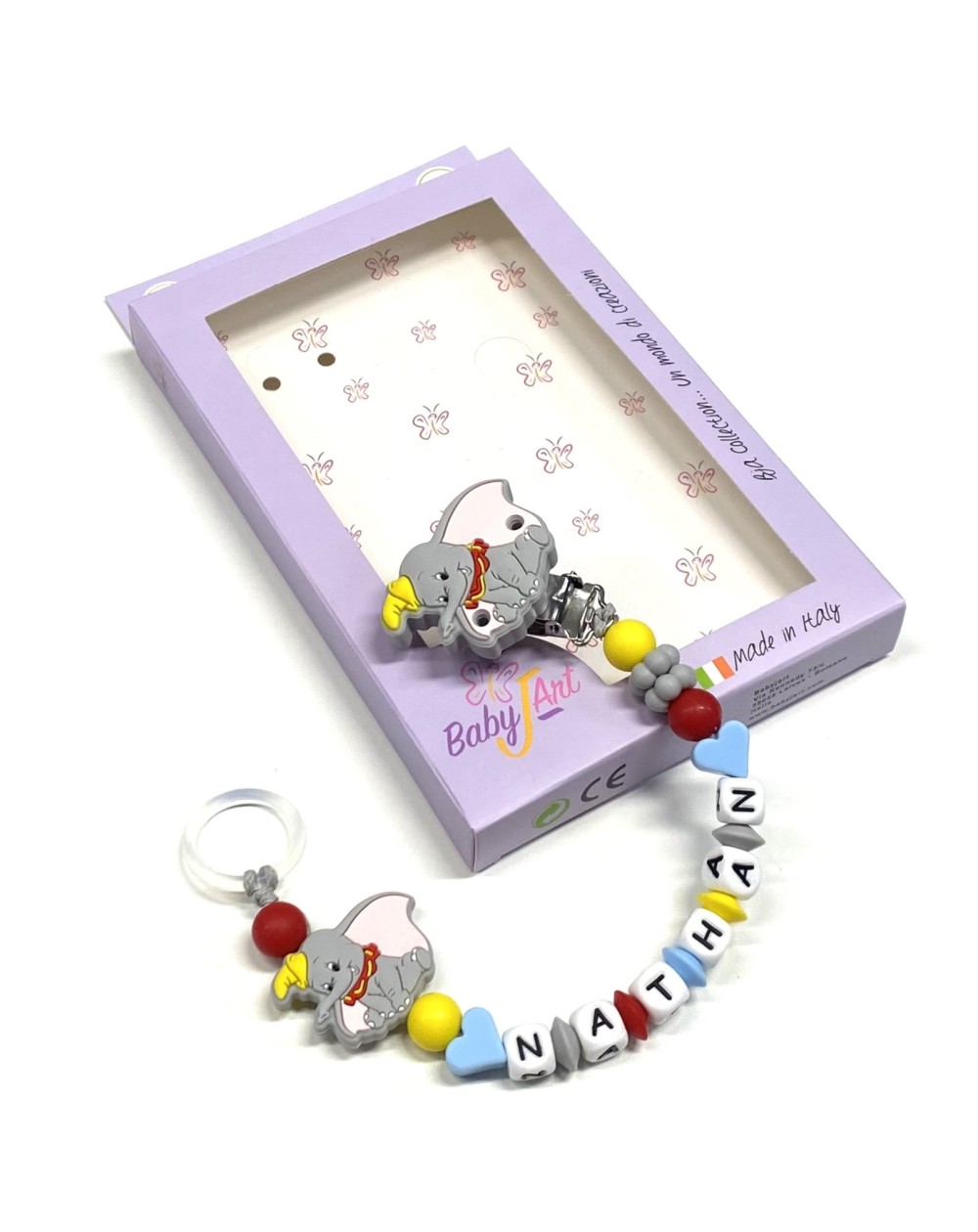 Cadena Chupete Personalizada, DUMBO, Chupete con Nombre, Cadena de Silicona, Portachupete Personalizado