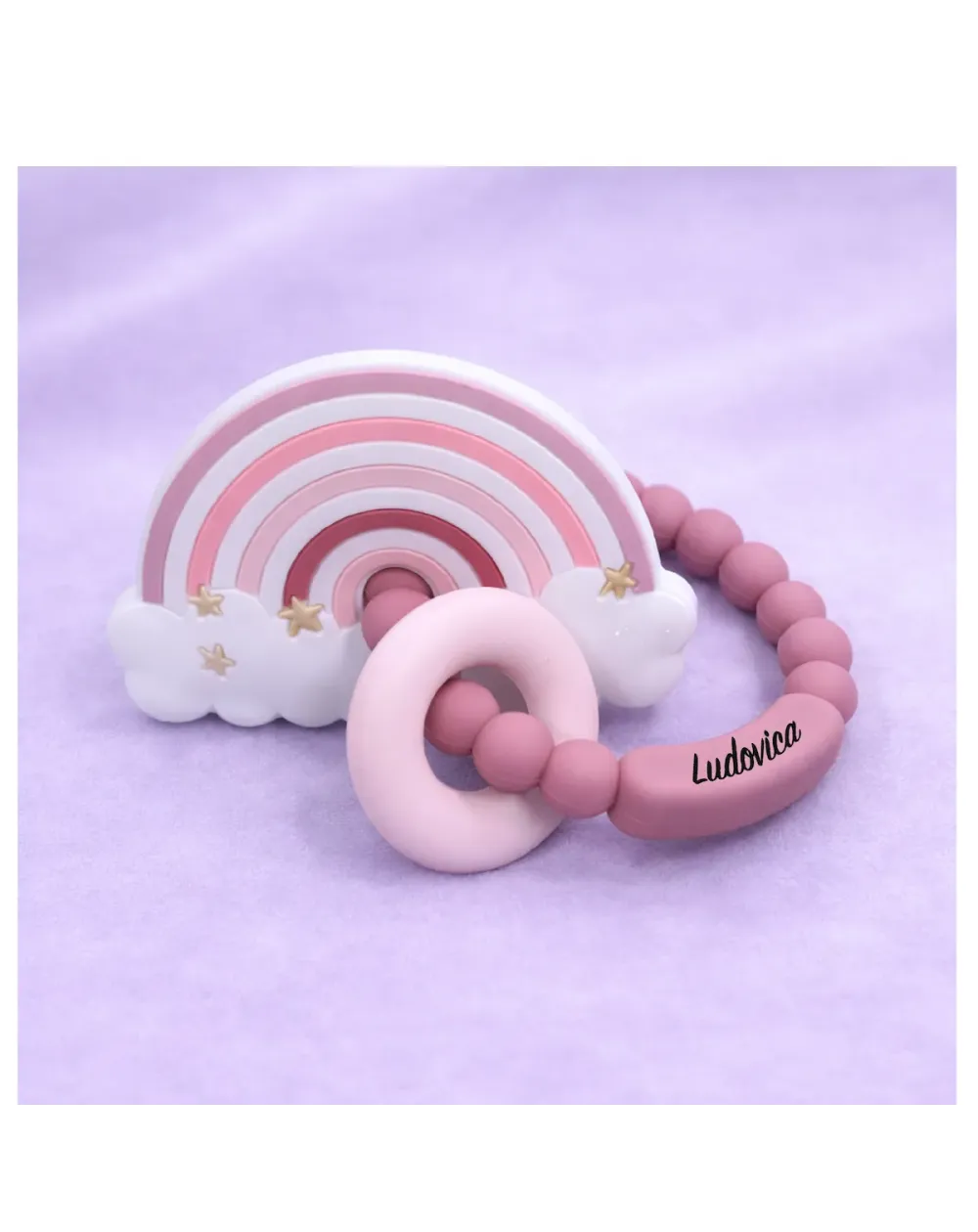 Anneau de dentition en silicone personnalisé avec prénom – Blush