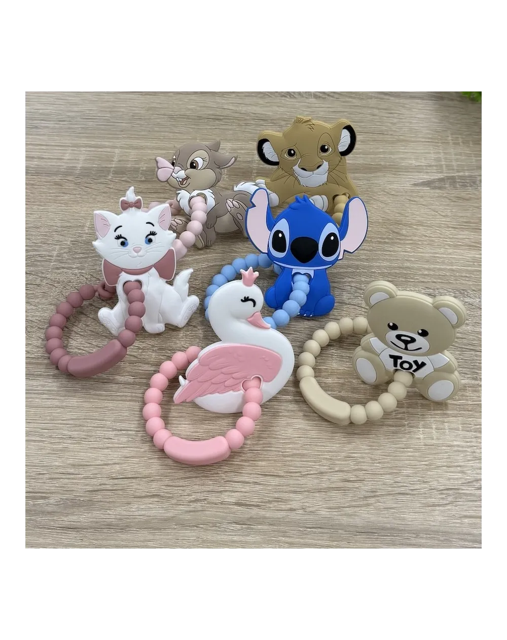 L’anneau s’utilise sous la surveillance d’un adulte. Bébé peut le saisir et mordiller le personnage pour apaiser ses gencives.