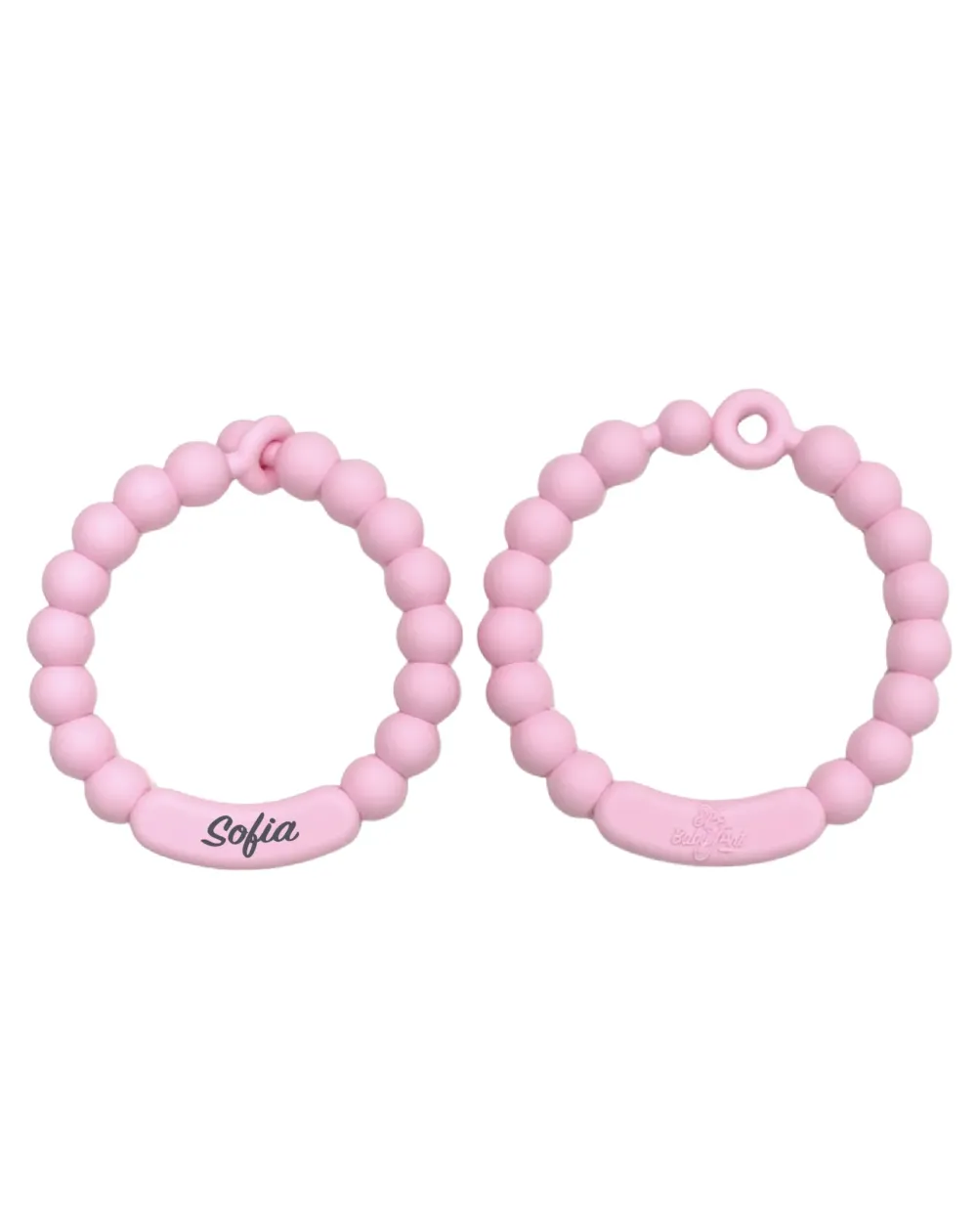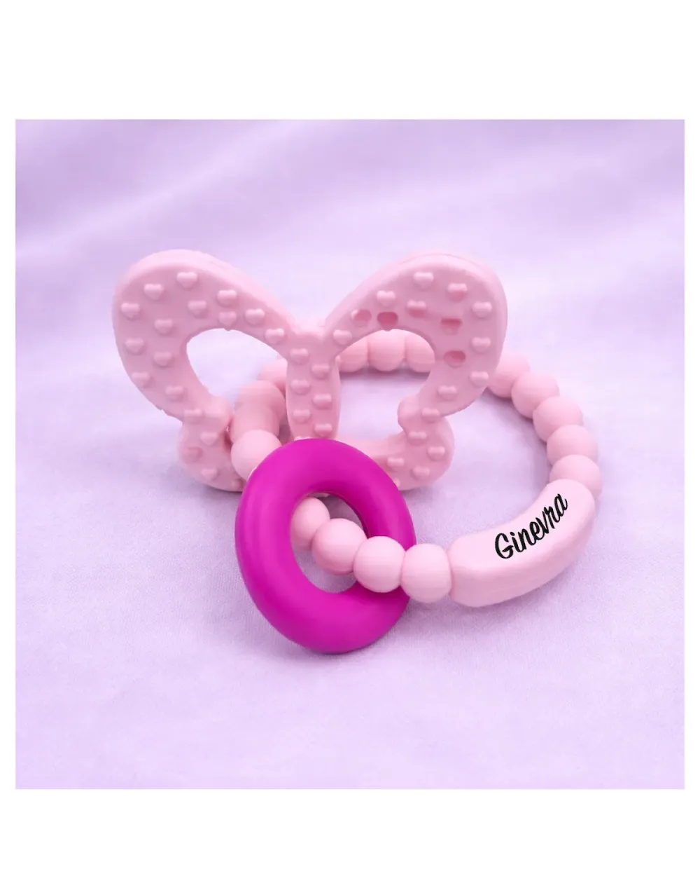 Anneau de dentition en silicone personnalisé avec prénom – Rose clair
