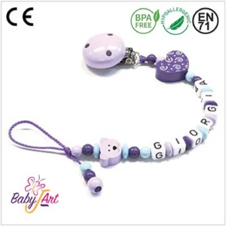 Babyjart Catenella portaciuccio legno con nome, gancio/adattatore ciuccio mam