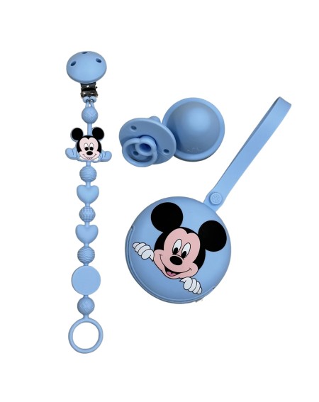 Chaîne de tétine BUBBLE CHARM MICKEY MOUSE BLEU PASTEL en silicone avec nom Prix 11,90 € Code produit : BJAPBCH03 N.B.! SI VOUS NE CONNAISSEZ PAS LE NOM DE L'ENFANT, NOUS POUVONS VOUS CONSEILLER DE METTRE LES MOTS "BÉBÉ", "PRINCE",...
