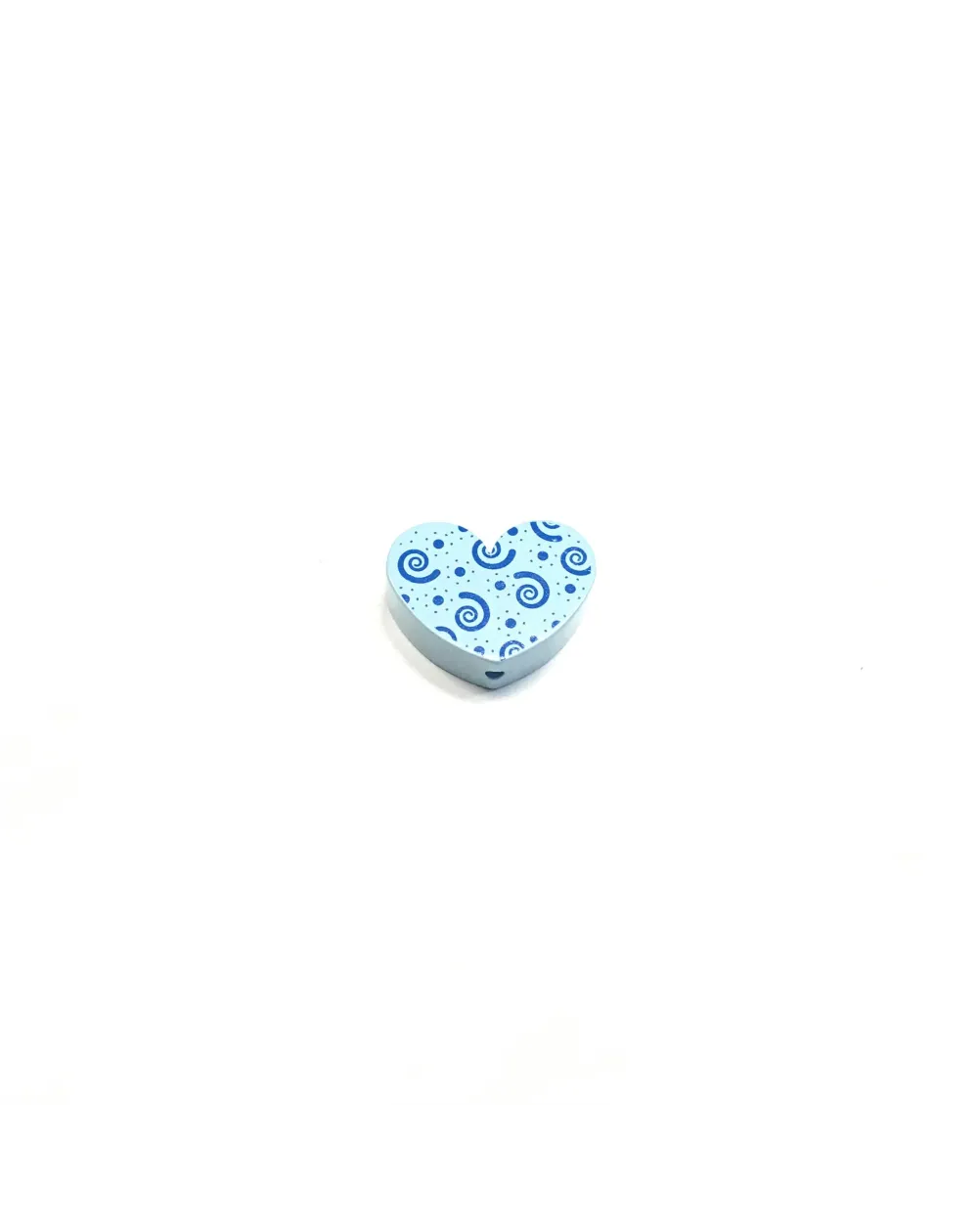 Coeur avec Dessins en BOIS. Dimensions env. 30X25X10mm. Trou env. 3mm verticale (de haut en bas)
