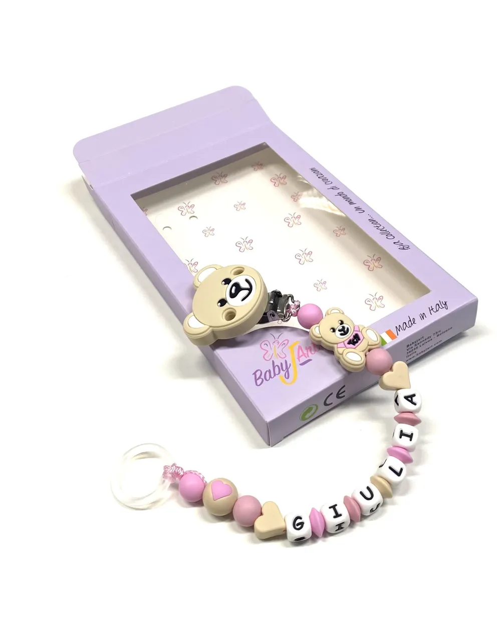 Attache-Sucette Personnalisée, MOSCHINO, Sucette avec Prénom, Chaîne Tétine en Silicone, Porte-Tétine Personnalisé