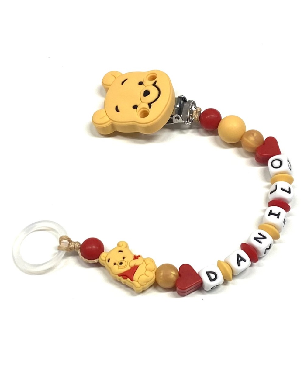 Attache-Sucette Personnalisée, WINNIE, Sucette avec Prénom, Chaîne Tétine en Silicone, Porte-Tétine Personnalisé