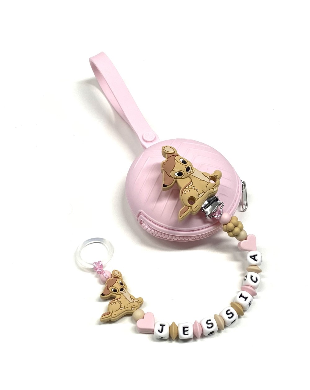 Attache-Sucette Personnalisée, BAMBI, Sucette avec Prénom, Chaîne Tétine en Silicone, Porte-Tétine Personnalisé