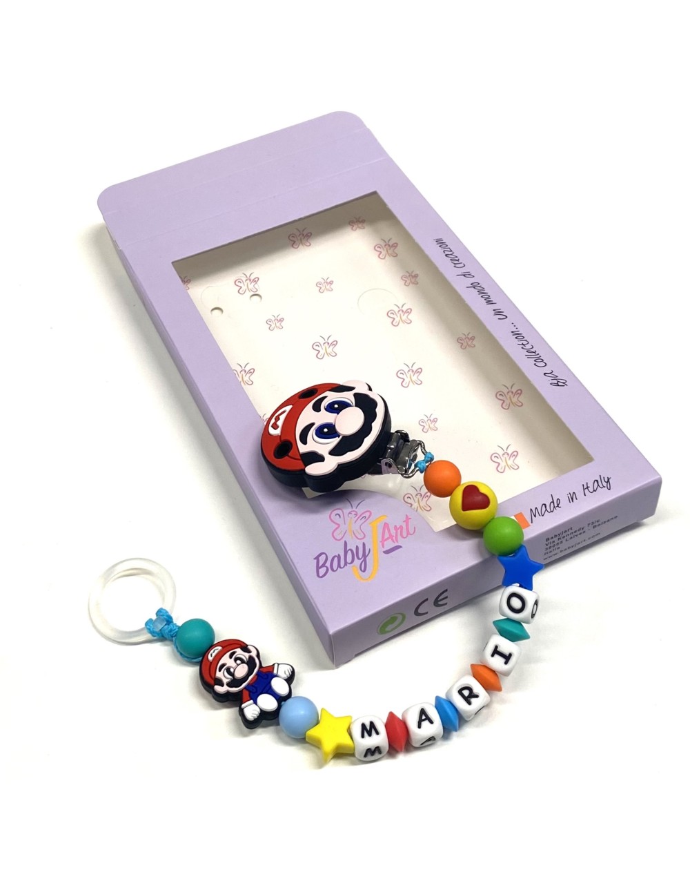 Attache-Sucette Personnalisée, SUPER MARIO, Sucette avec Prénom, Chaîne Tétine en Silicone, Porte-Tétine Personnalisé
