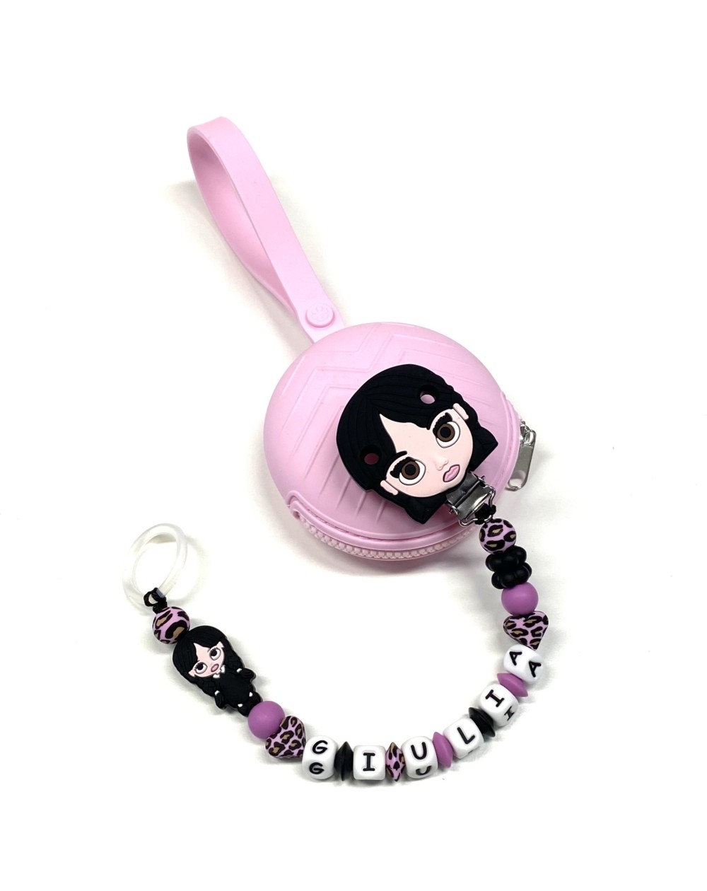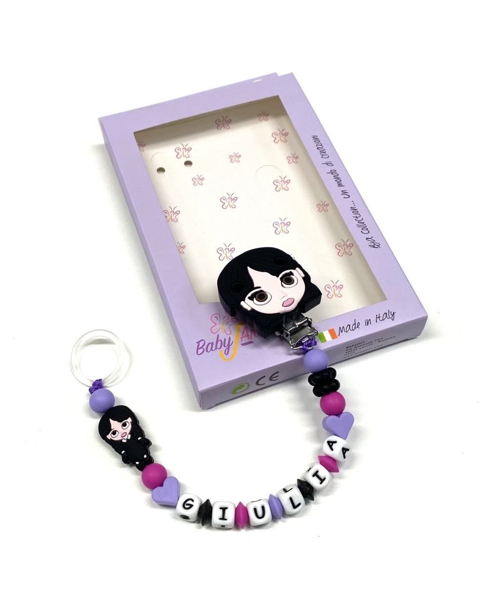 Attache-Sucette Personnalisée, MERCREDI ADDAMS, Sucette avec Prénom, Chaîne Tétine en Silicone, Porte-Tétine Personnalisé